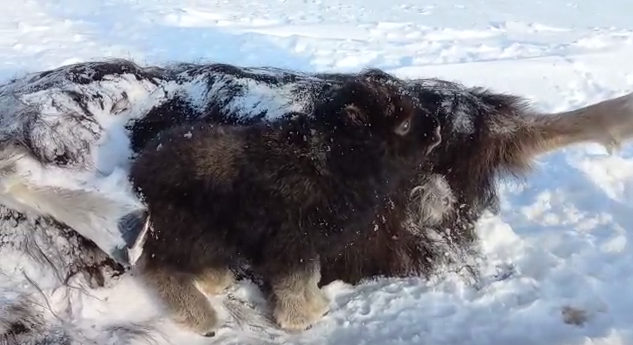 На полуострове Таймыр в начале мая нашли тело взрослой самки овцебыка. Рядом с ней находился совсем еще маленький детеныш. Судя по видео, которое опубликовали в телеграм-канале Охота и рыбалка в Якутии, малыш размером с небольшую собаку. Авторы ролика утверждают, что тело самки на момент обнаружения бычка было еще теплым.
