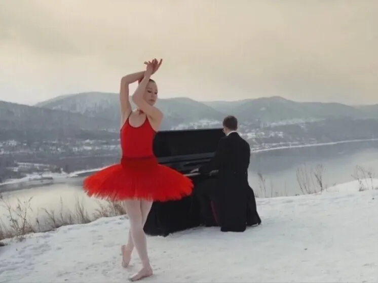 В честь 8 Марта в Красноярске сняли необычный ролик. Балерина станцевала на краю обрыва. Выступление сопровождалось живой игрой на фортепиано.