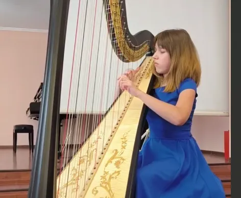 Класс по игре на арфе открылся в музыкальной школе в 2022 году. Тогда был приобретен первый музыкальный инструмент в 40 струн и меньшего размера.