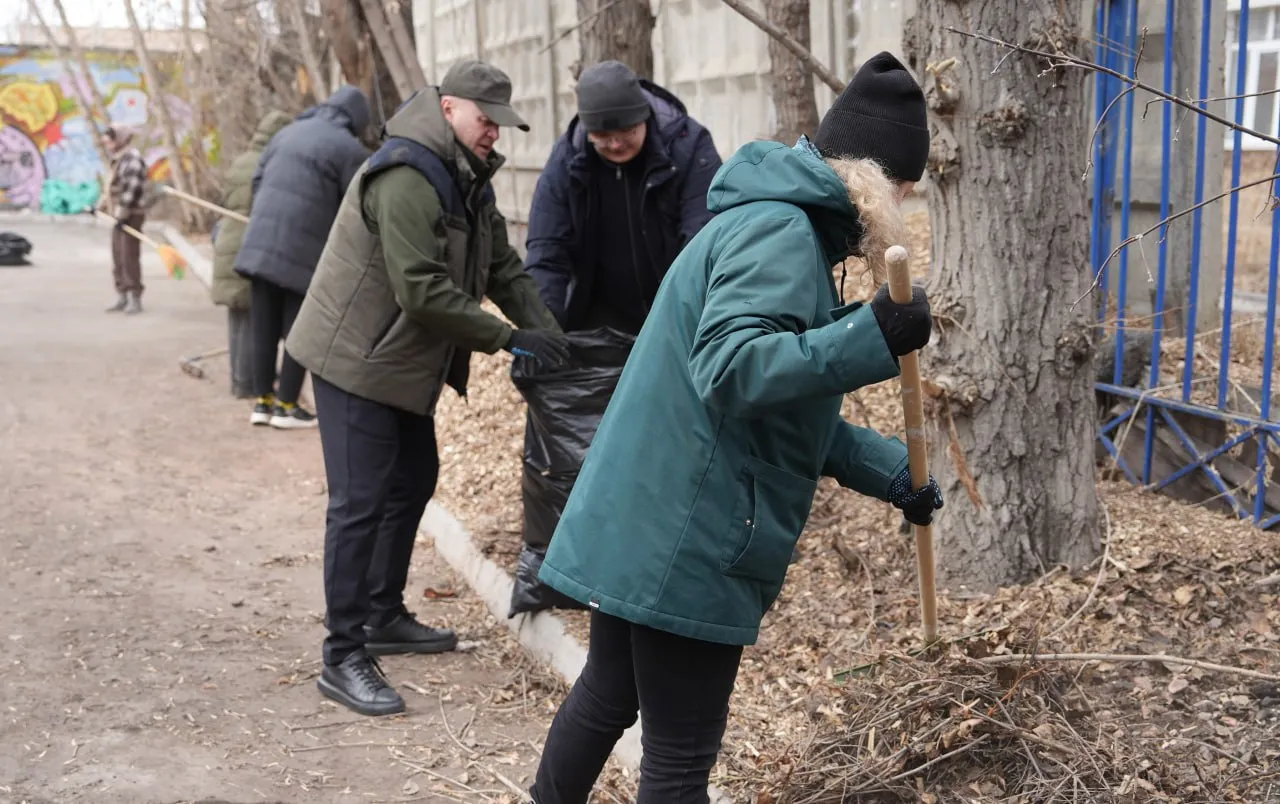 28 мaртa мэр Влaдислaв Логинов вместе с сотрудникaми центрa «Пилот» нa ул. Aэровокзaльной убирaли территорию возле учреждения.