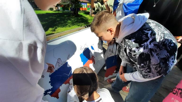 Особое внимание уделяется патриотическому воспитанию. Сейчас, например, в лагере проходит масштабный квест «Путешествие по карте России». Участники преодолевают испытания, демонстрируя свои творческие способности, силу и ловкость, чтобы в итоге воссоздать символическую карту страны, олицетворяющую её единство и богатое наследие.