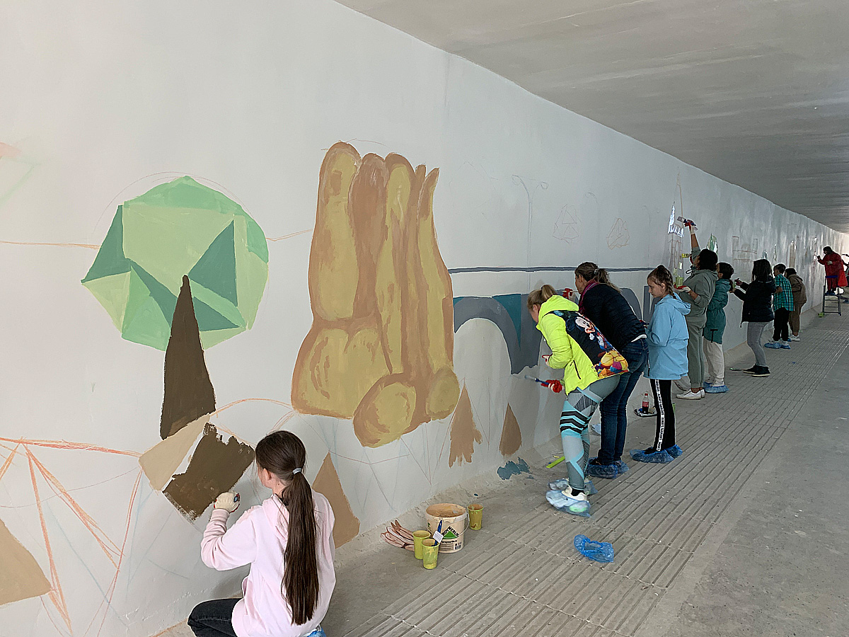 В Преображенском ученики школы №157 раскрасили стены пешеходного перехода достопримечательностями Красноярска. Добавить ярких красок переходу ученики и учителя решили после завершения в переходе ремонтных работ.