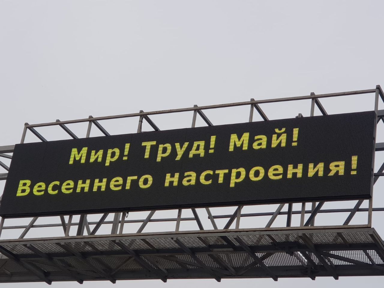 На въезде в Красноярск на табло появилось юмористическое поздравление с 1 мая