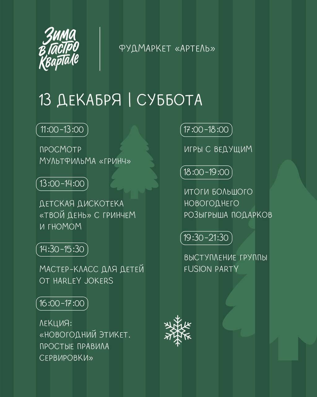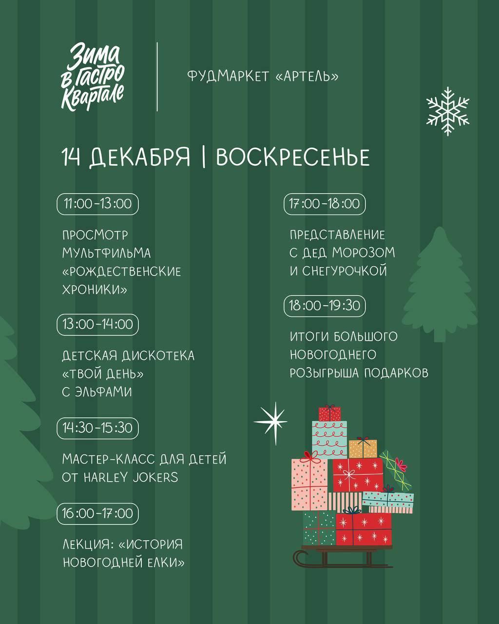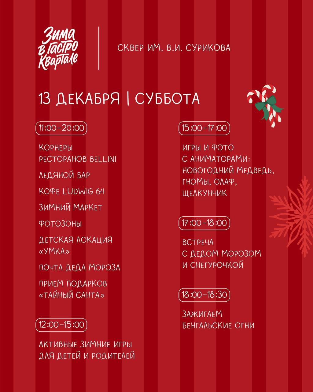 В сквере им. В.И. Суриков и в фудмаркете «Артель» 13 и 14 декабря пройдет традиционный сезонный фестиваль еды и напитков.