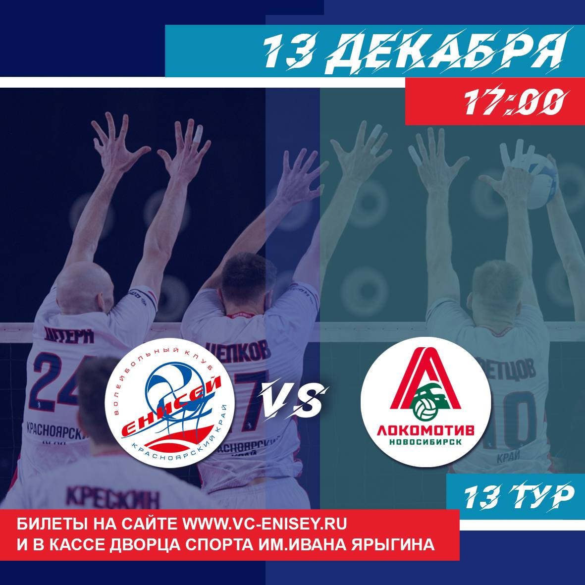 Волейбол, 17:00 «Енисей» – «Локомотив», ДС им. Ивана Ярыгина, 0+