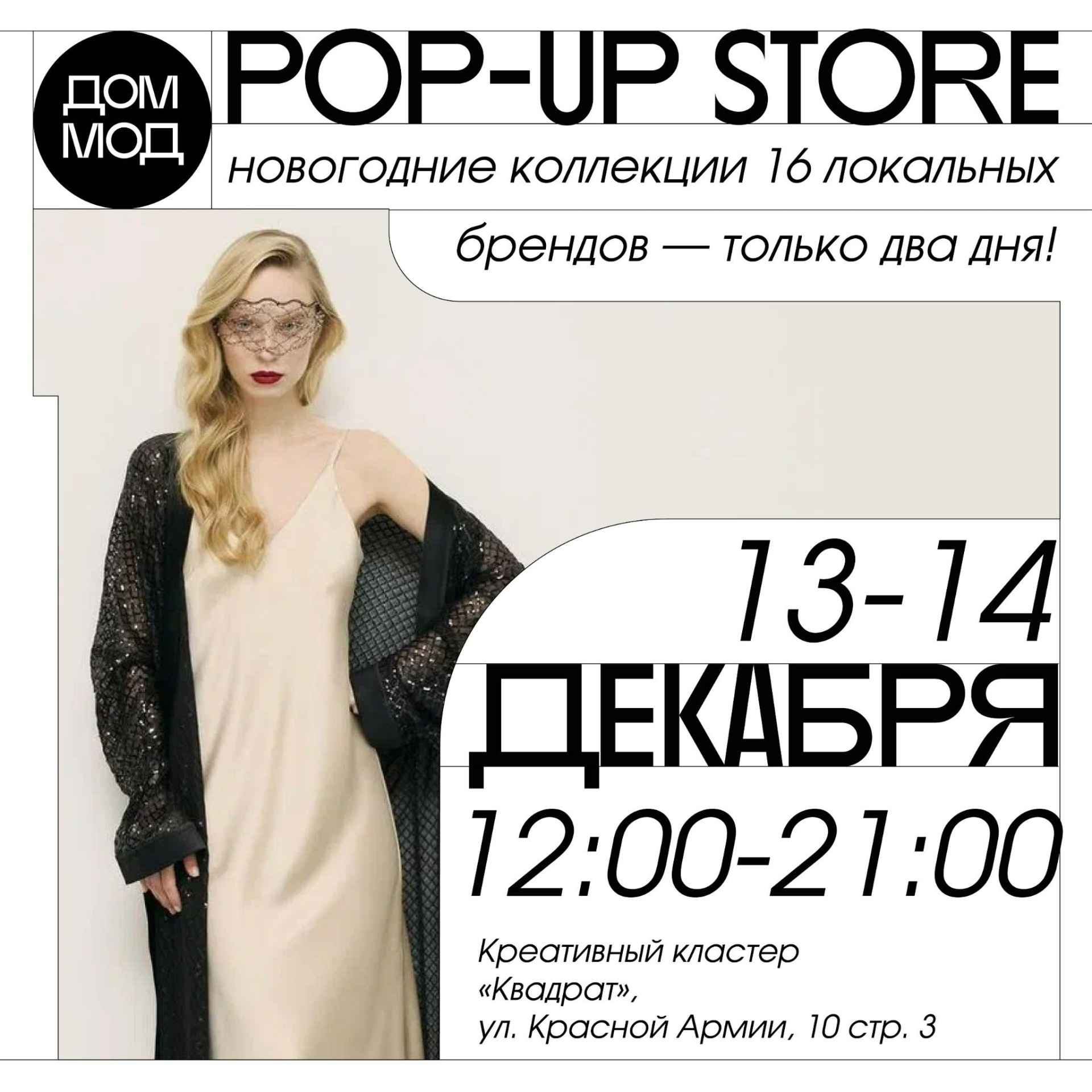 В «Квадрате» на два дня откроются 16 поп-ап сторов – временных магазинчиков. Каждый из них представит новогодние коллекции красноярских дизайнеров. Список участников – на сайте организаторов. 18+