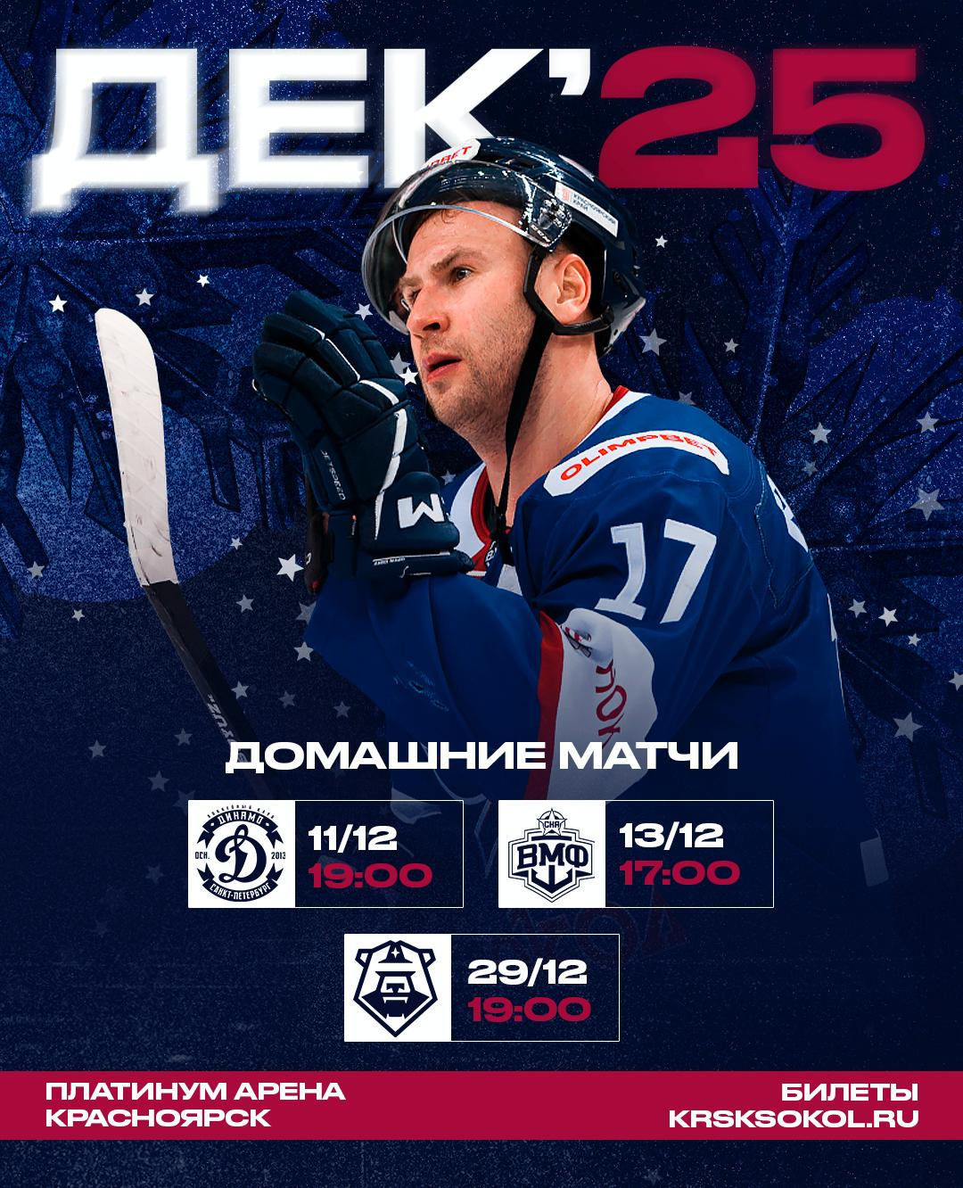 Хоккей, 17:00 «Сокол» – «СКА-ВМФ» из Санкт-Петербурга, Платинум Арена Красноярск, 0+