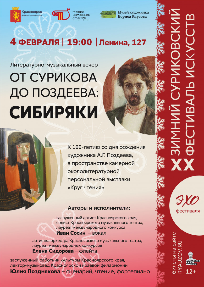 «От Сурикова до Поздеева. Сибиряки»: литературно-музыкальный вечер. 12+