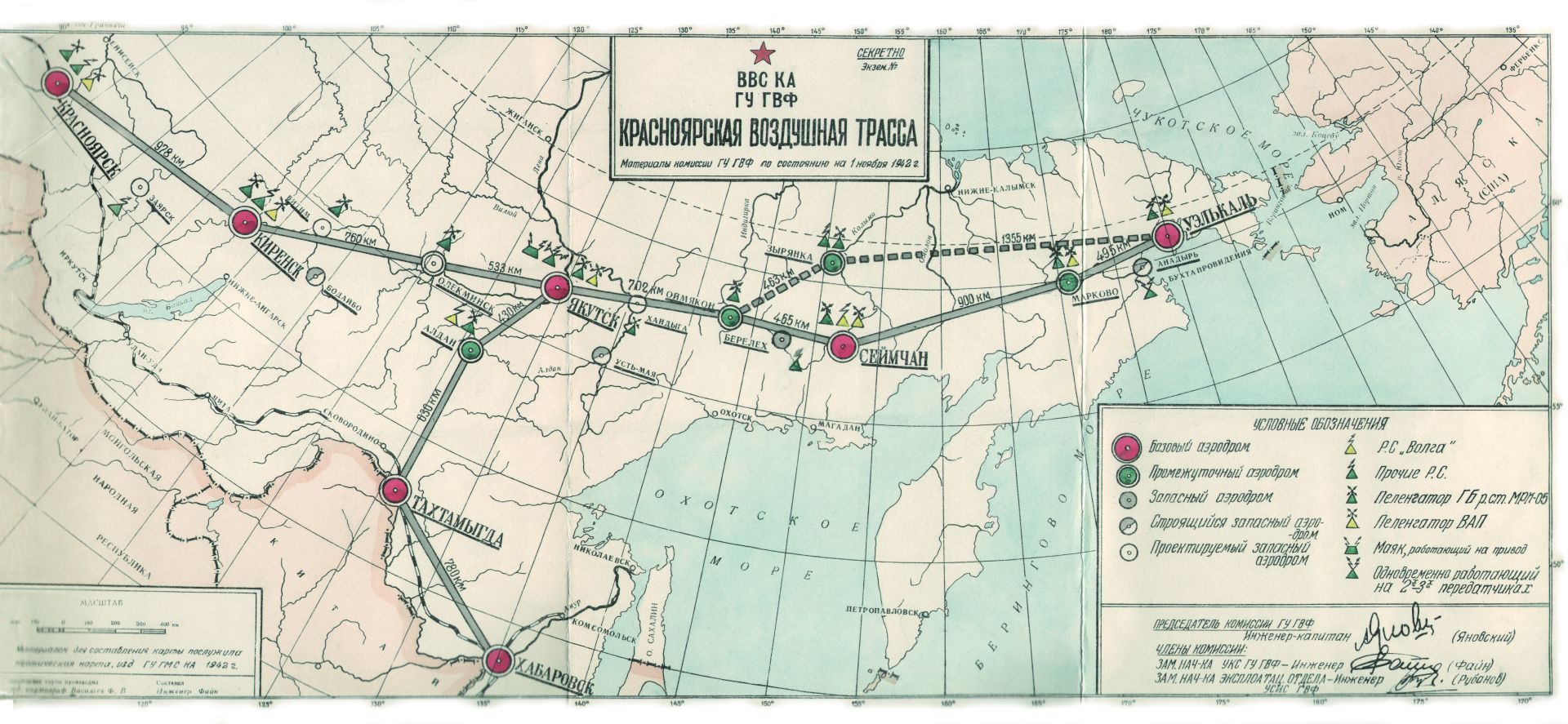 — Выбор нашего города в качестве конечной точки Алсиба, связавшего США и СССР, был сделан неслучайно, — сообщил Юрий Николаевич. — Именно в Красноярске в 1929 году родилась полярная авиация. Здесь с этого времени базировались самолёты, летавшие в Арктику. К началу 1940-х годов пилотами Енисейской авиагруппы главного управления Северного морского пути совершались успешные длительные полёты в арктических условиях протяжённостью до двух тысяч километров. На север Красноярского края доставлялись и грузы, и пассажиры, работали диспетчеры и метеорологи. К 1942 году был накоплен огромный опыт для открытия и эксплуатации трассы Аляска — Сибирь.