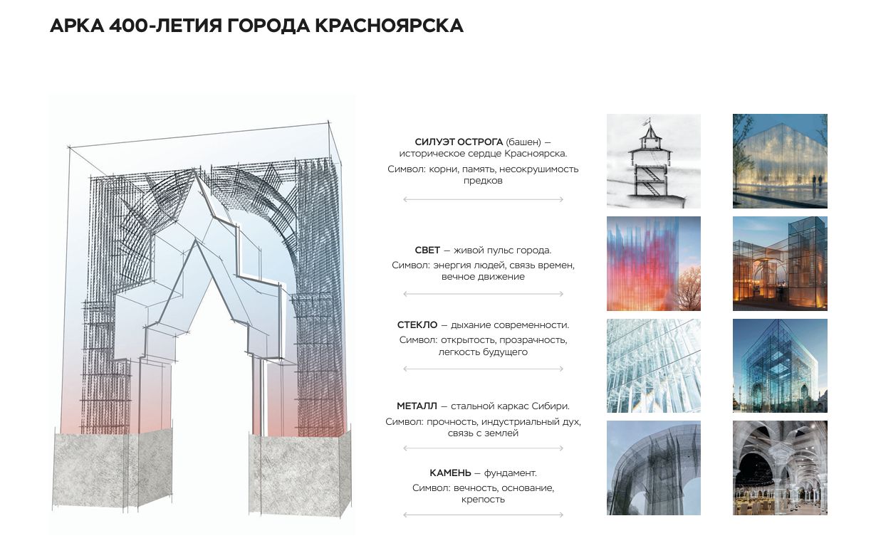 Существующую арку 375-летия Красноярска демонтируют. Вместо нее появится новая — арка 400-летия города. Ее разместят в другом месте, ближе к улице Каратанова. Таким образом, арка не просто обновится, а полностью сменит локацию и станет частью нового архитектурного облика площади.