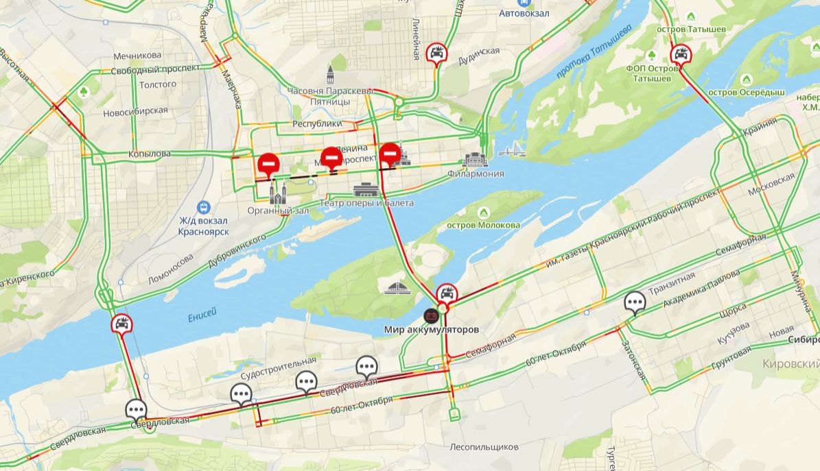 На мостах Красноярска сегодня, 2 октября, утром движение оказалось затруднено из-за аварий. По данным 2ГИС, заторы зафиксированы сразу на трех переправах.