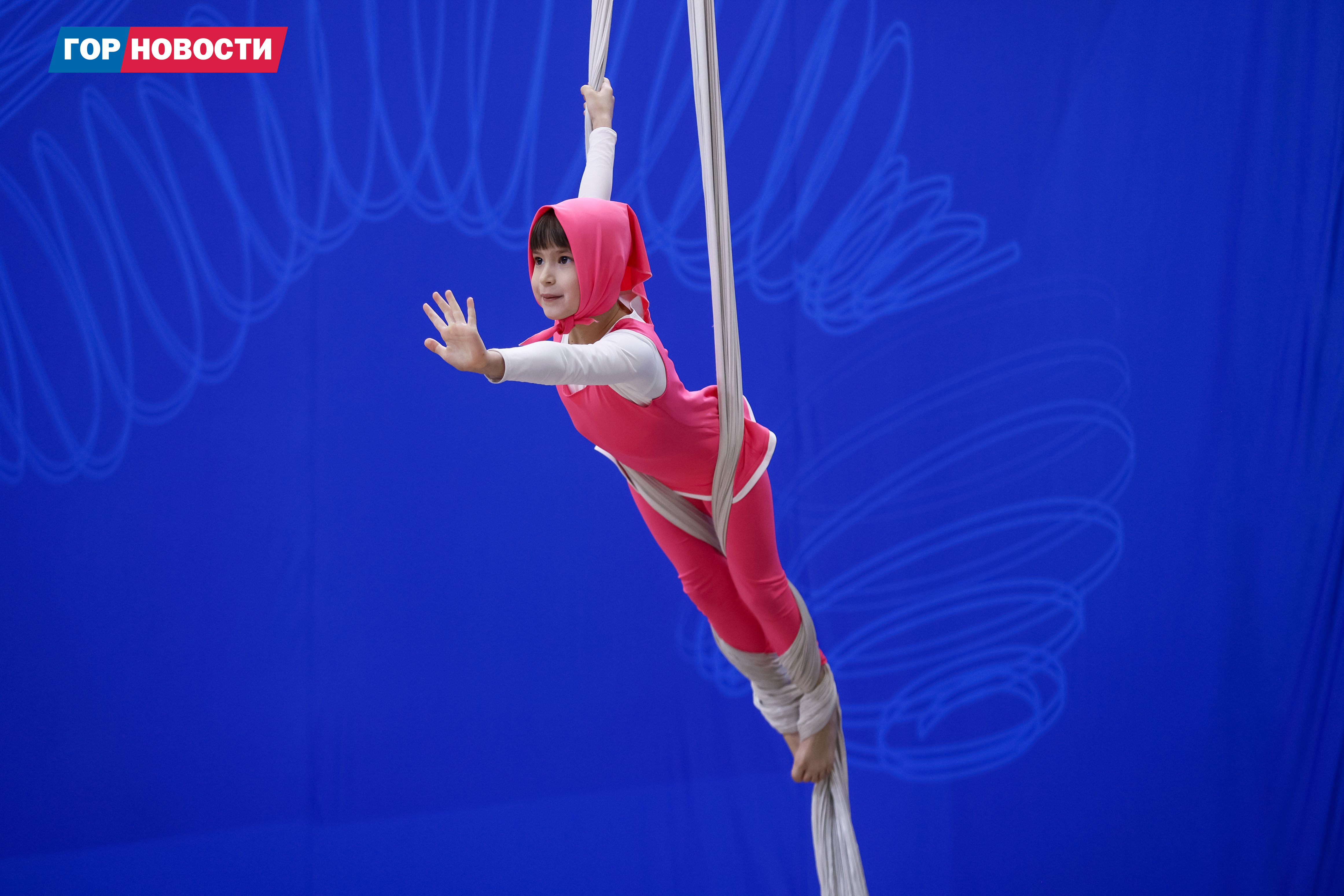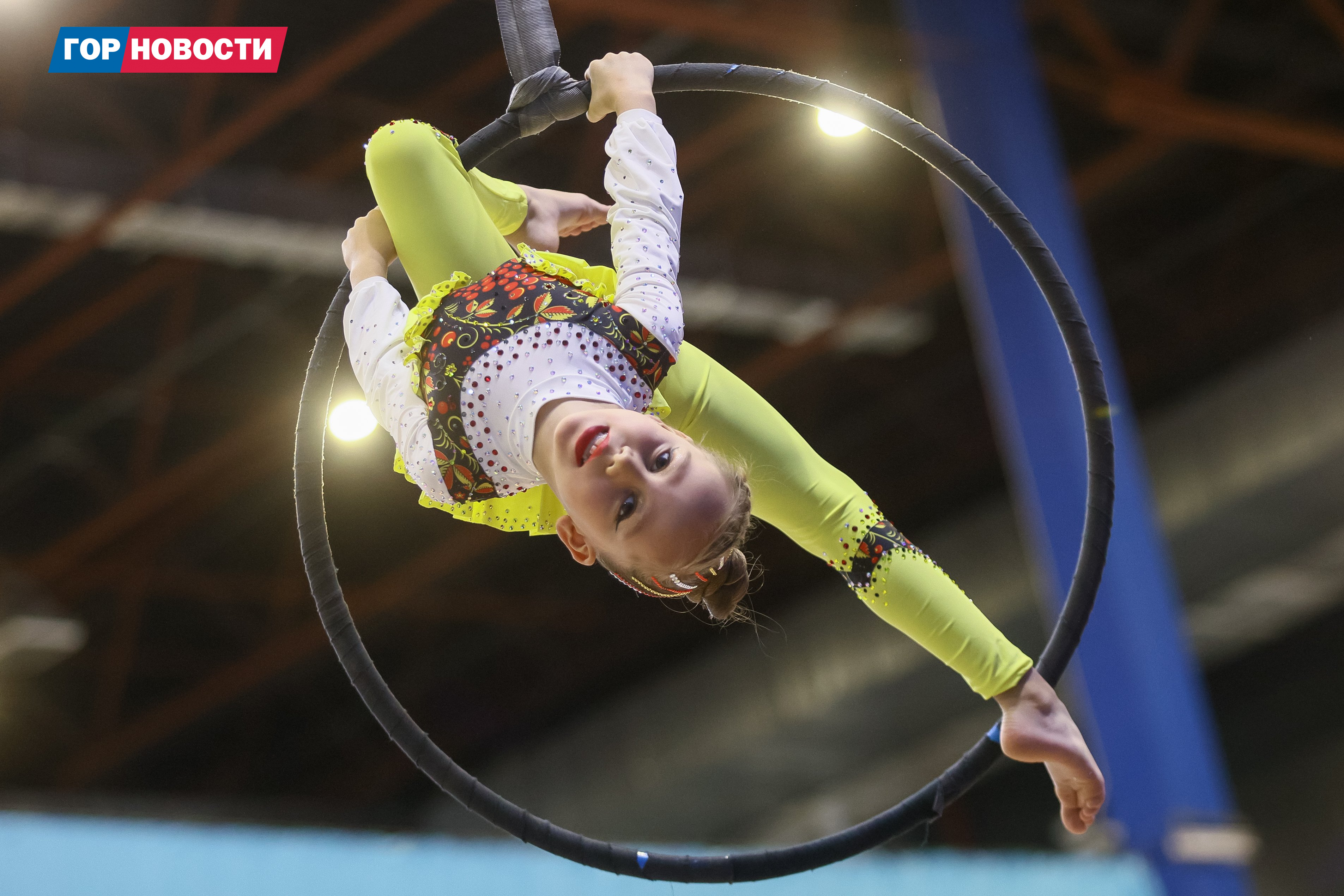 Юные спортсменки и опытные гимнасты показали мастерство на кольцах, полотнах и стропах.