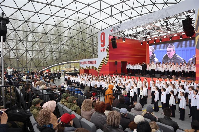 В сценическом комплексе Татышев-парка лучшие школьники Красноярска представили уникальную театрализованную постановку, посвящённую бессмертному подвигу советского народа в Великой Отечественной войне. Здесь завершился городской военно-патриотический фестиваль «Красноярск. Летопись Победы. Память без срока давности». Всего участниками большого патриотического проекта стали 1500 школьников со всех районов города.