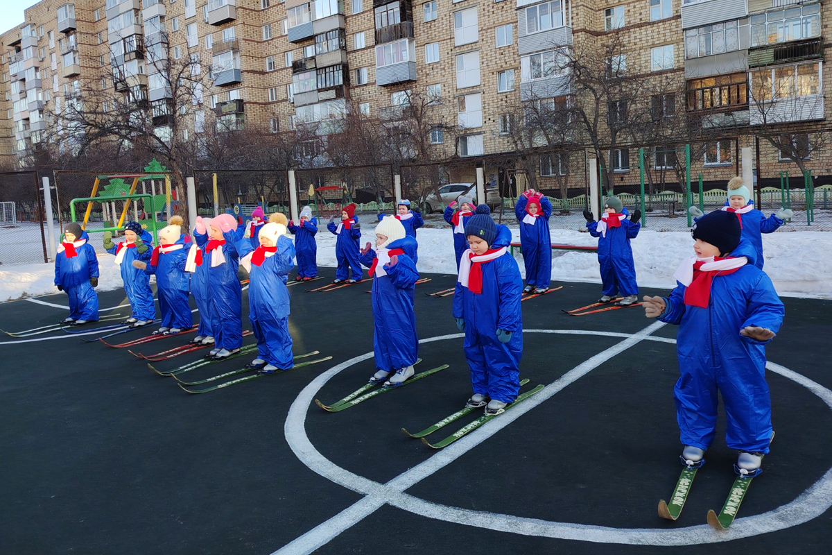 С приходом зимы, каждое утро малышей 3-4 лет начинается с повторения правил безопасности при катании на лыжах. На тренировках дошколята постепенно осваивают лыжное мастерство: от простейших движений переходят к более сложным. Ребятишки привыкают к снаряжению, учатся шагу без палок и постепенно переходят к скользящему шагу, поворотам и торможению. Тренировки включают разминку, разучивание техники, подвижные игры на лыжах и спуск с небольших склонов, обеспечивая развитие координации и физическую активность.