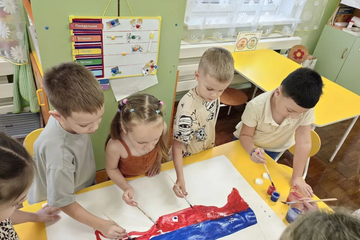 Дети узнают новое через творчество - с удовольствием рисуют, лепят и делают аппликации. Так, в детском саду № 169 Кировского района малыши аккуратно выводят линии триколора, чтобы украсить группы праздничными плакатами, а воспитанники детского сада № 313 Кировского района создали мультфильм, посвящённый празднику.