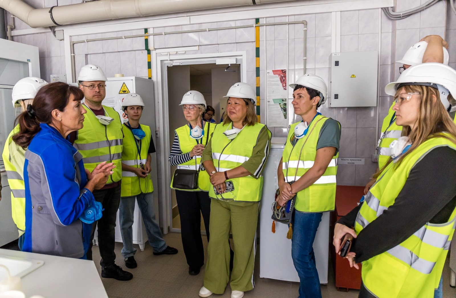 Гости осмотрели санитарно-промышленную лабораторию Богучанского алюминиевого завода. Здесь стоит современное оборудование для анализа воды, почвы и воздуха.
