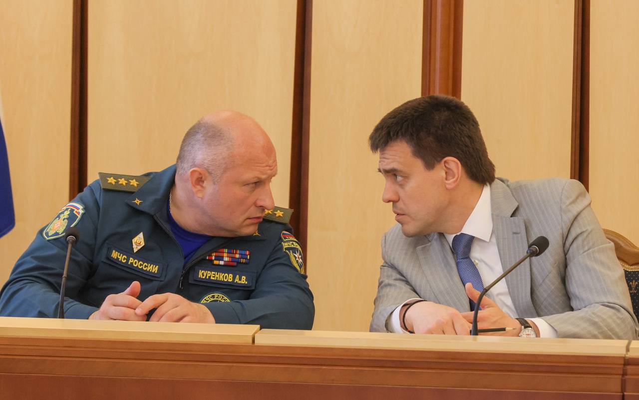 Глава Красноярского края Михаил Котюков рассказал главе МЧС России Александру Куренкову о мерах, принимаемых для защиты территории региона.