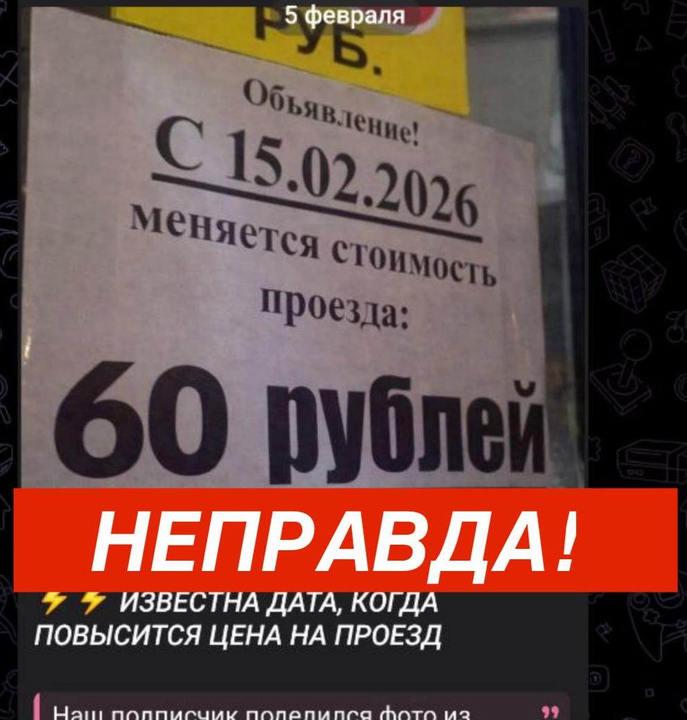 В телеграм-каналах распространяется фейк о том, что с середины февраля плата за проезд повысится до 60 рублей.