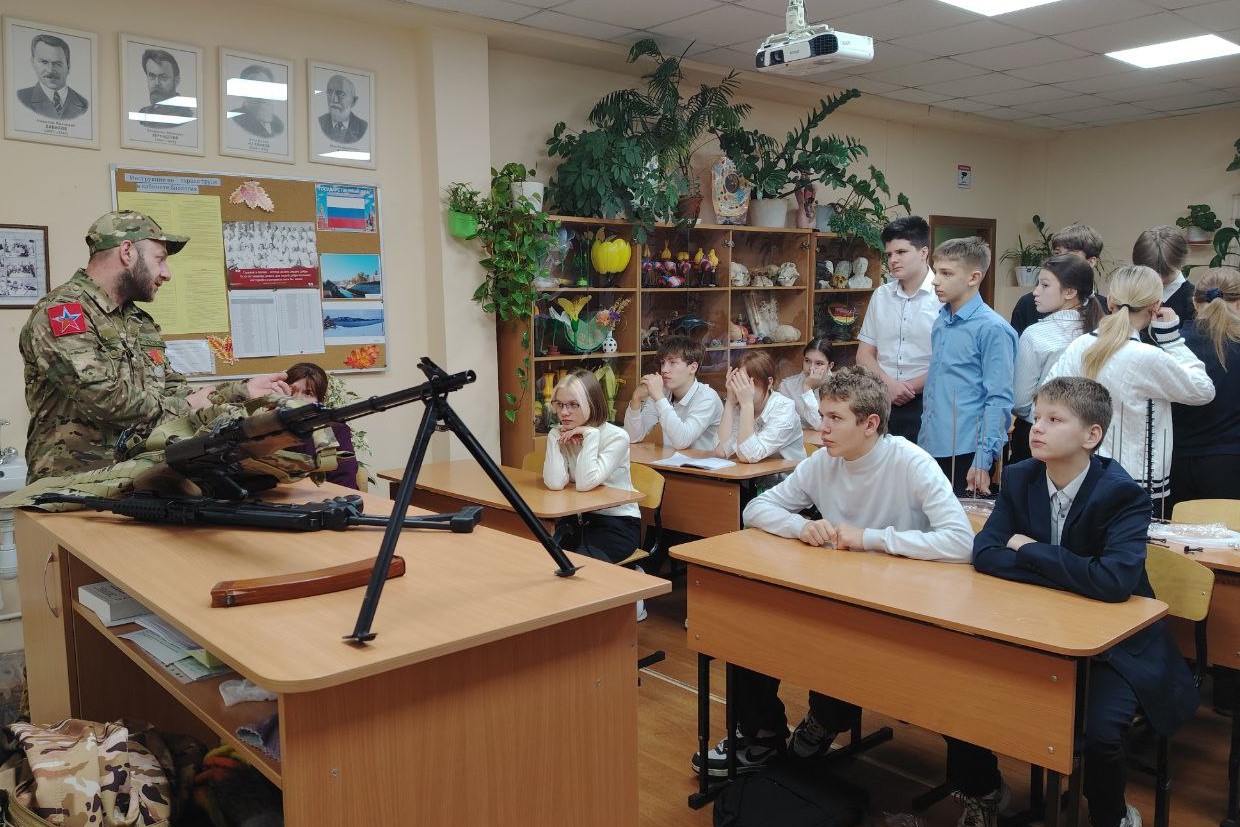 Сегодня в средней школе №10 побывал участник специальной военной операции Станислав Галиулин, награждённый медалью Жукова. Боец рассказал ученикам 8 класса о современном стрелковом оружии и технических особенностях беспилотных летательных аппаратов, которые применяют защитники на фронте.