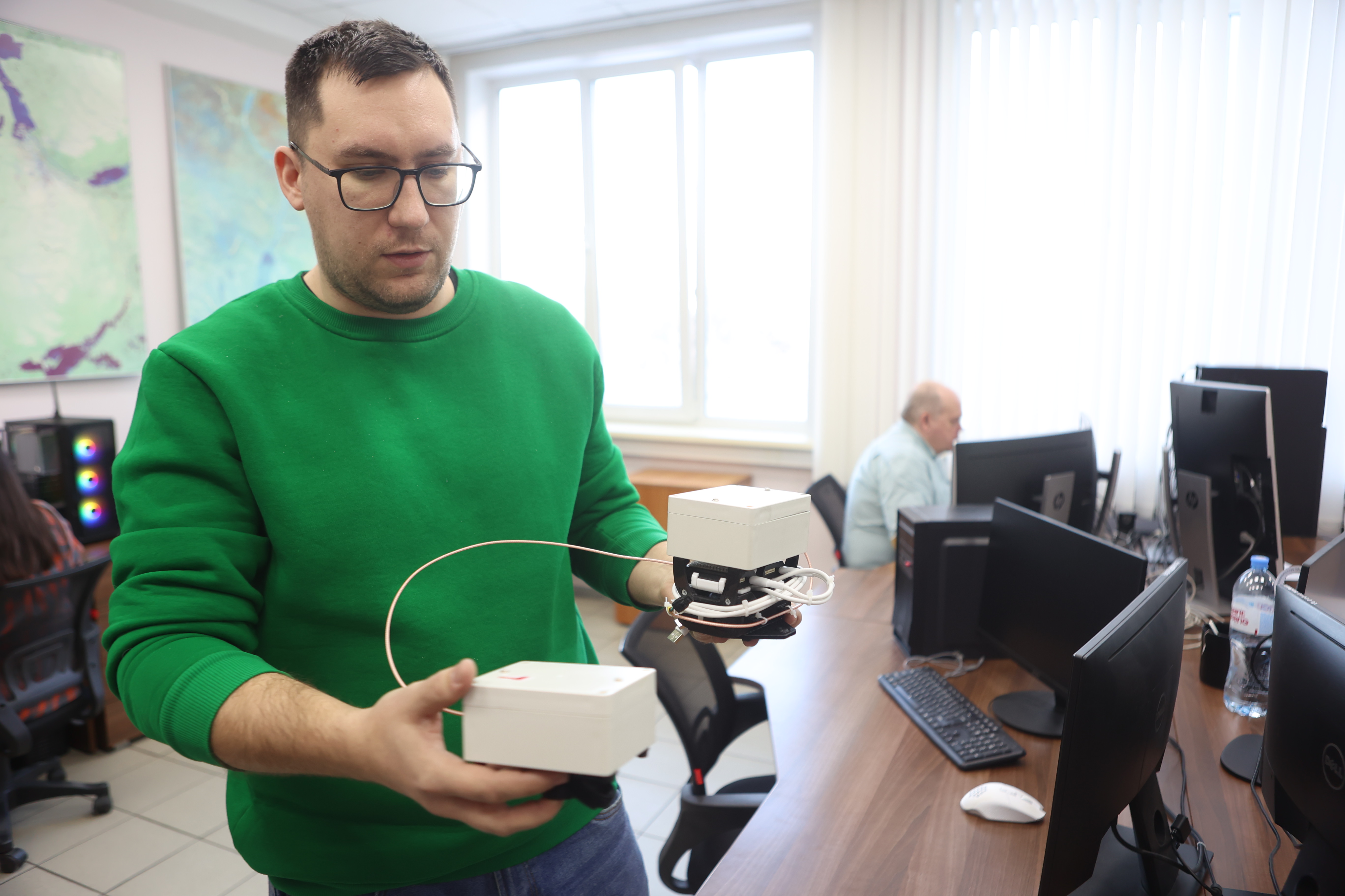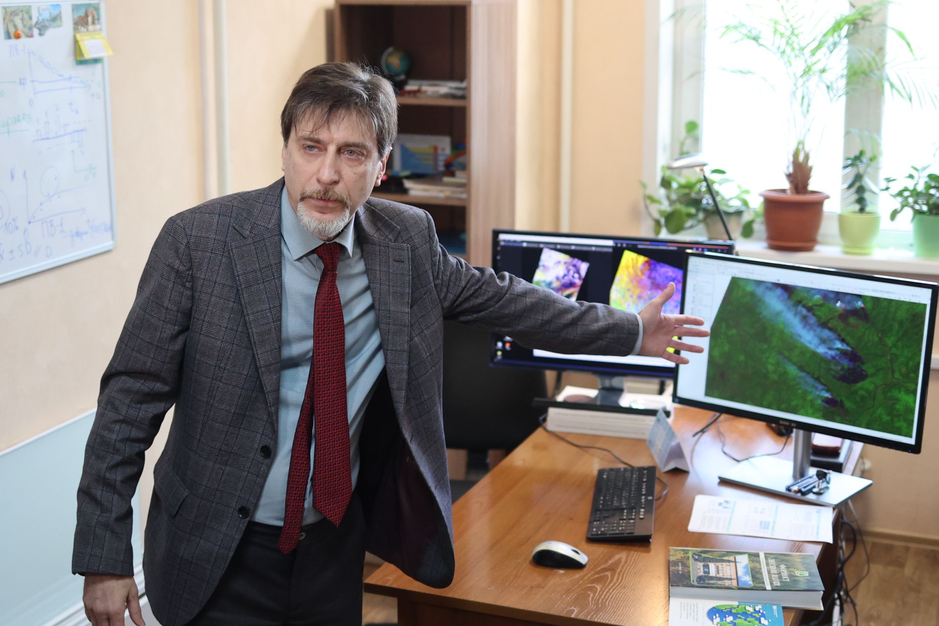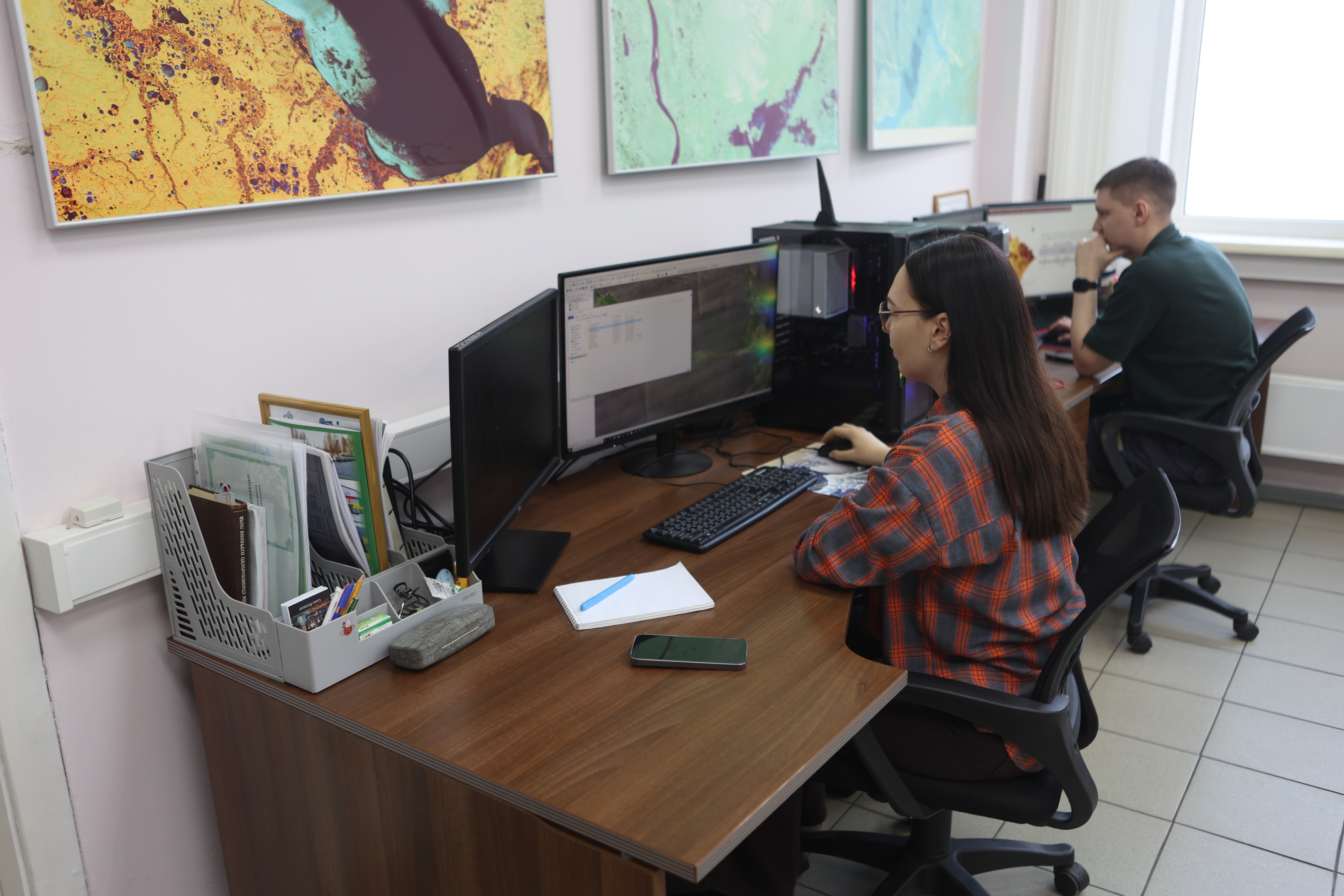 Первым пунктом пресс-тура стала лаборатория космических систем и технологий, которая базируется в Институте экологии СО РАН. Здесь реализуется одно из важнейших в Сибири исследовательских направлений — спутниковое отслеживание природных пожаров. Уже почти 30 лет учёные собирают сведения о состоянии экосистем нашего огромного региона и на их основе оценивают влияние огненной стихии на хрупкую северную природу. В лаборатории установлено современное оборудование, которое позволяет фиксировать информацию и создавать большие базы данных для их дальнейшего анализа.