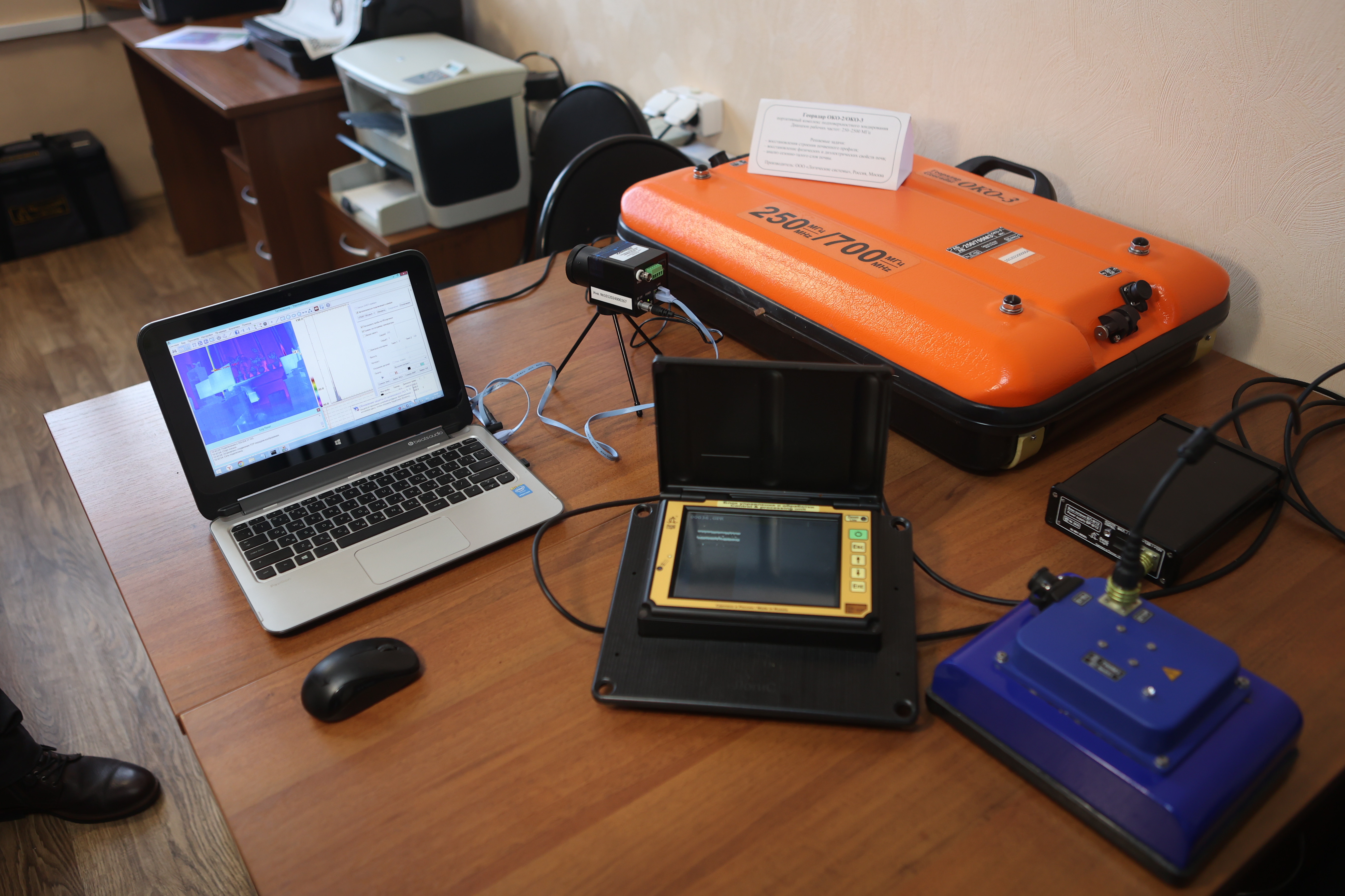 — Данный аппарат работает в нескольких спектральных диапазонах, — объясняет Евгений Пономарёв. — Нарушенный в результате пожара или хозяйственной деятельности человека участок леса может начать восстанавливаться очень быстро, например в течение сезона на нём уже появляется новая растительность. И в зелёном спектральном канале кажется, что с ним всё в порядке. Однако в синем тепловом диапазоне эти территории ещё довольно долго отличаются от исходного состояния — на протяжении десятилетий. По спутниковым фото уже не понять, что на этом месте был пожар. А нам видно, что территория была повреждена, ещё не до конца восстановилась и здесь существует риск разрушения мерзлоты. Данный феномен мы назвали «тепловой аномалией». Используют в науке также георадар — прибор для зондирования земли. Его «взгляд» может проникать в почву на глубину до шести метров и захватывает радиус в 30 метров. Георадар применяют для оценки состояния мерзлоты на конкретном участке.
