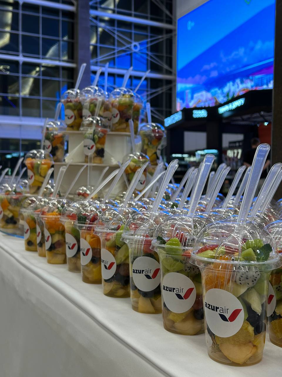 В честь первого рейса воздушная гавань подготовила праздничную программу. Гостей встречали фотозоной, фруктовыми угощениями и интерактивами.