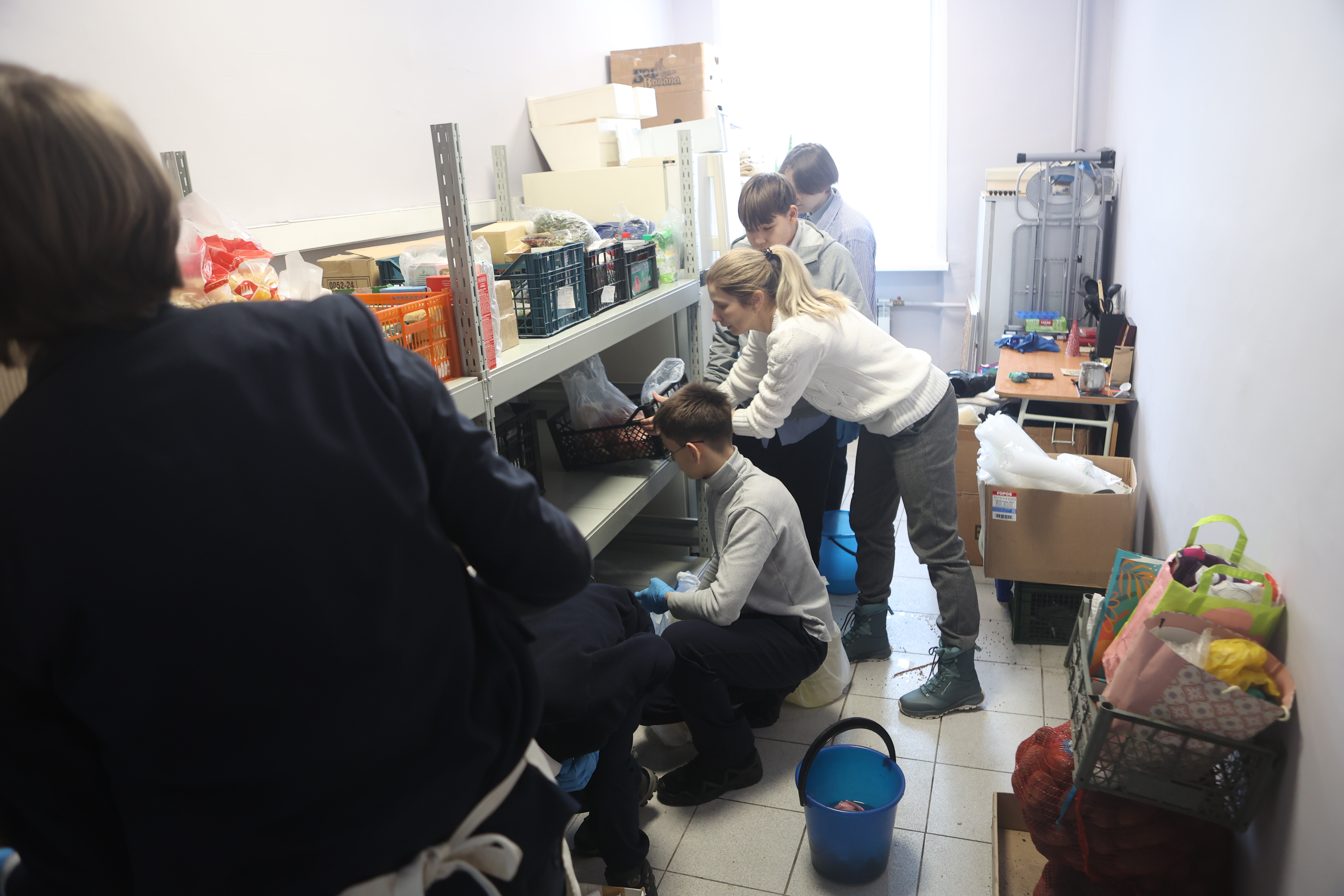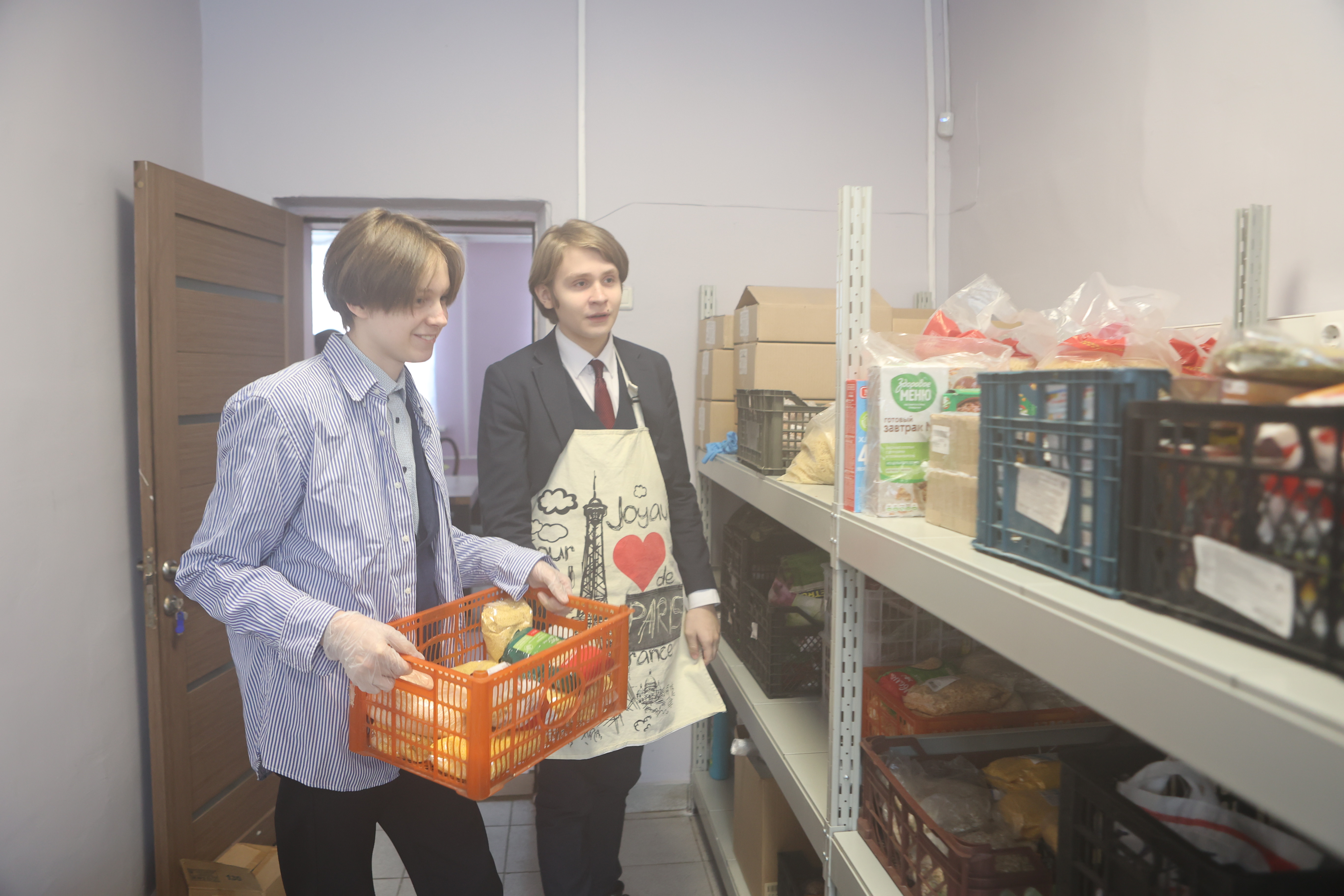 Помогают столовой и волонтёры. В день, когда организацию навестили журналисты «Городских новостей», здесь также трудились ученики восьмого класса из школы № 10. Пять мальчишек, не испугавшись мороза, пришли на уроки, но вместо занятий им предложили поучаствовать в добром деле — прибрать в столовой на складе. Помещение небольшое, да и работы не так чтобы много, но сам факт участия в таком мероприятии дорогого стоит. Ребята протёрли стеллажи, рассортировали пакеты с крупами, подмели пол.