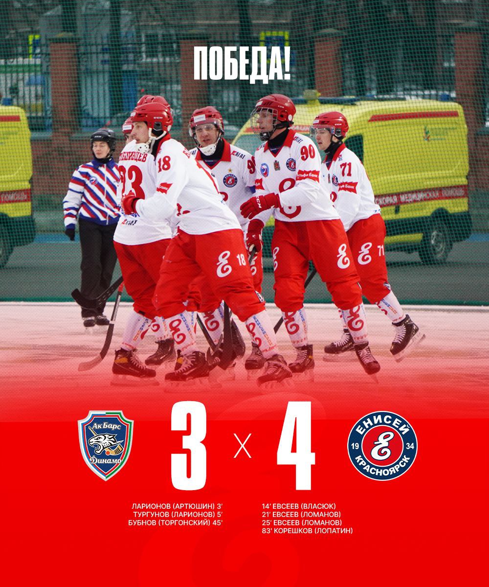 Вчера, 6 декабря, хоккейный клуб «Енисей» обыграл «Ак Барс-Динамо» в Казани.