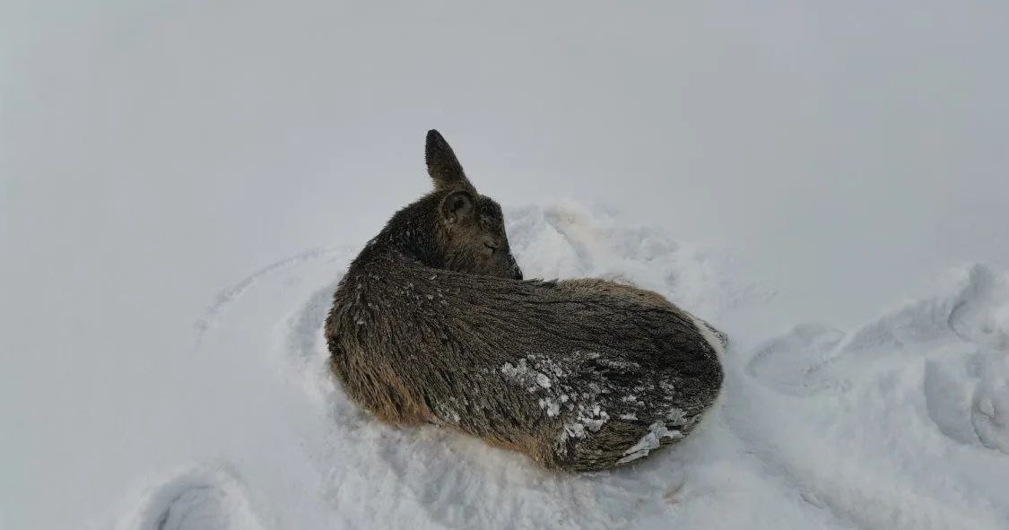 На Красноярском водохранилище косуля провалилась под тонкий лед. Животное выбежало на замерзшую поверхность, но не смогло перебежать водоем – силы быстро закончились. Так что косуля осталась лежать посреди льда.