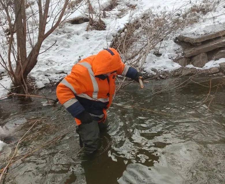 Всю зиму здесь убирали поросль и мусор, чтобы весной вода текла беспрепятственно. Сейчас здесь размывают наледь, чтобы предотвратить ледяные заторы.