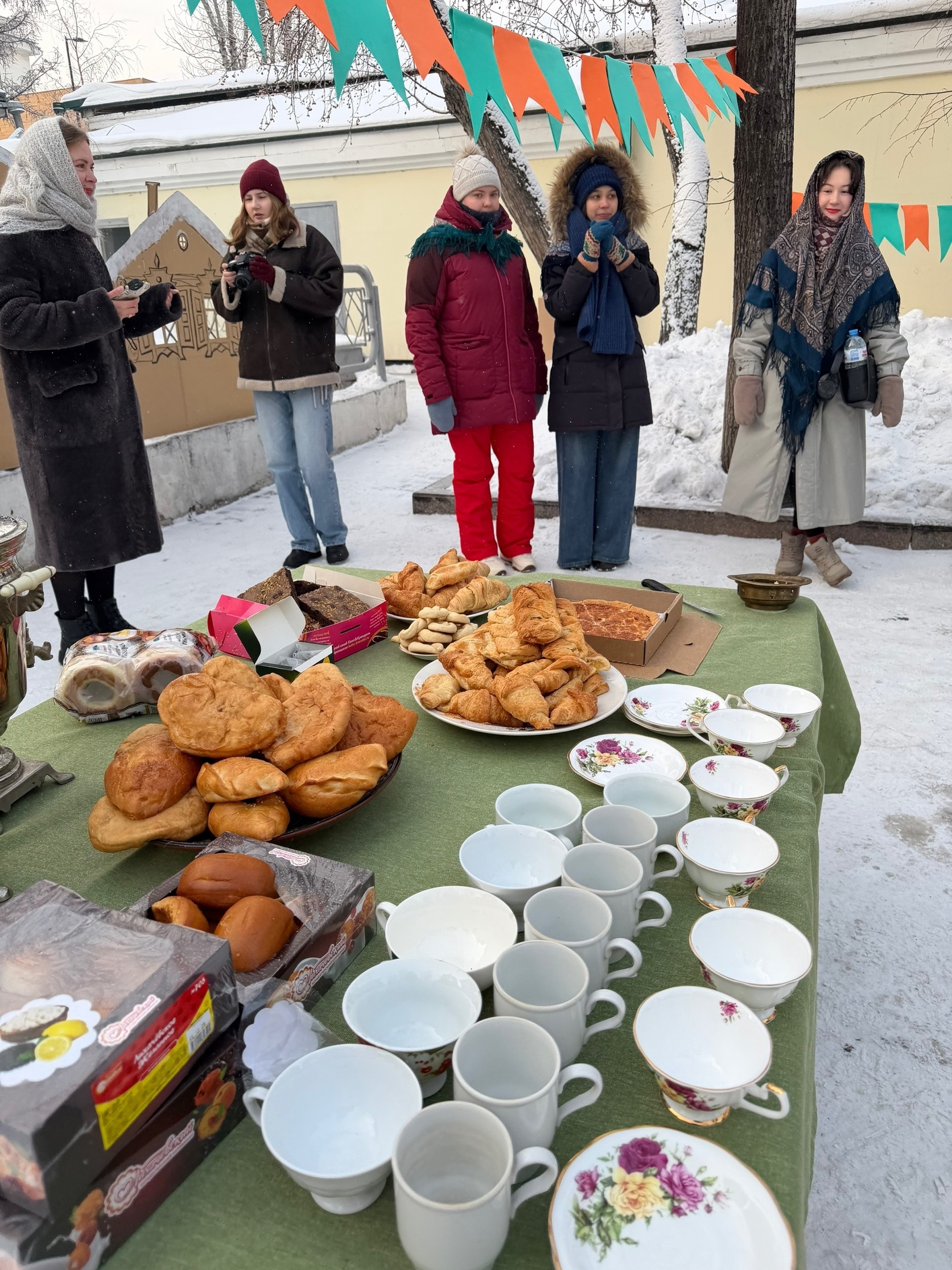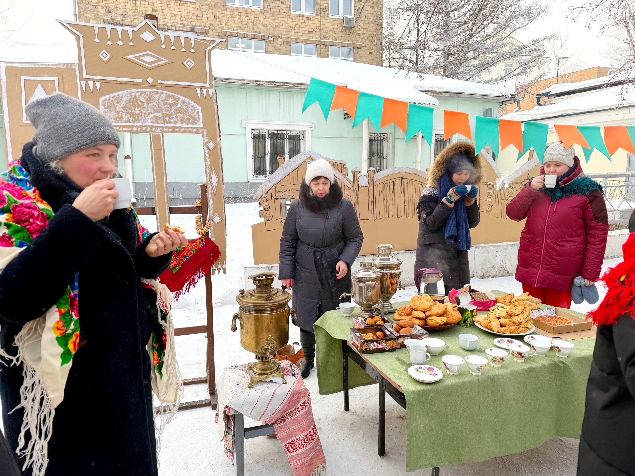 Во дворе учреждения прошёл камерный и уютный праздник. За большим столом собрались преподаватели, выпускники и ученики — с булочками, чаем да пирогами.