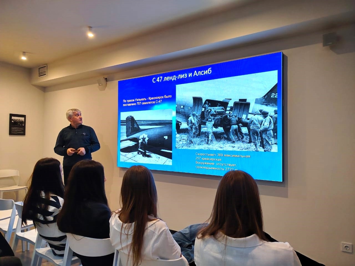 В музее «Мемориал Победы» прошла встреча школьников с Александром Матвеевым, руководителем поискового отряда «Трасса». Он рассказал историю создания и подробности эвакуации самолета Дуглас C-47 на Таймыре спустя более полвека после аварийной посадки. Матвеев лично участвовал в экспедиции.