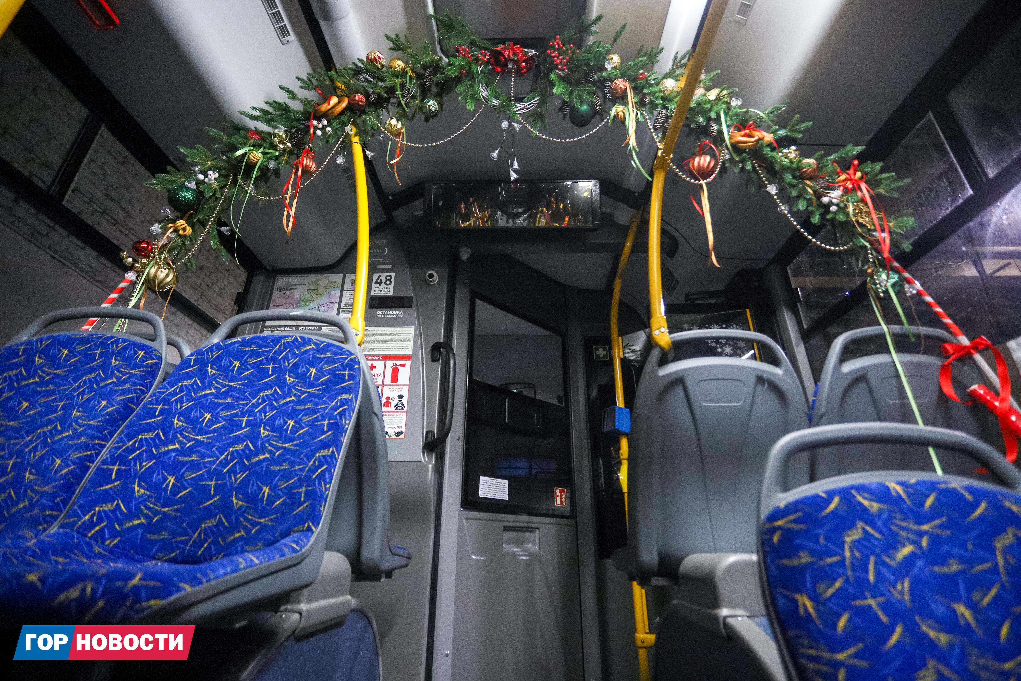 В автобусах появляются мишура, елки, шары, ленты и новогодние инсталляции. Некоторые водители и кондукторы выходят на маршруты в костюмах сказочных персонажей. По словам сотрудников предприятия, желающих поучаствовать оказалось много — автобусы украшают даже ночью или в выходные.