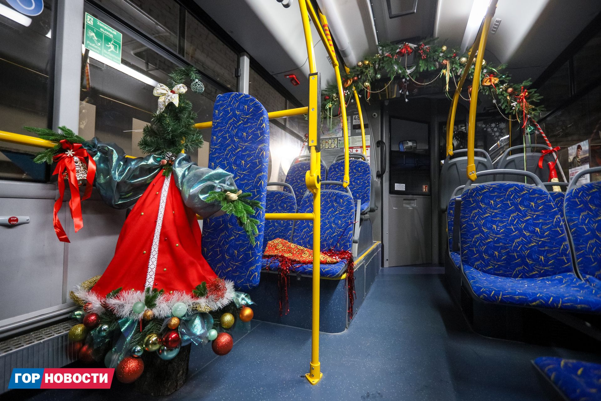 В автобусах появляются мишура, елки, шары, ленты и новогодние инсталляции. Некоторые водители и кондукторы выходят на маршруты в костюмах сказочных персонажей. По словам сотрудников предприятия, желающих поучаствовать оказалось много — автобусы украшают даже ночью или в выходные.