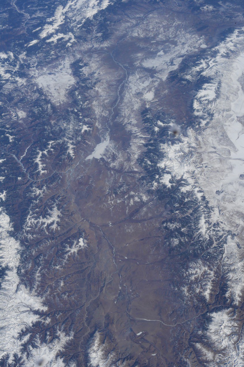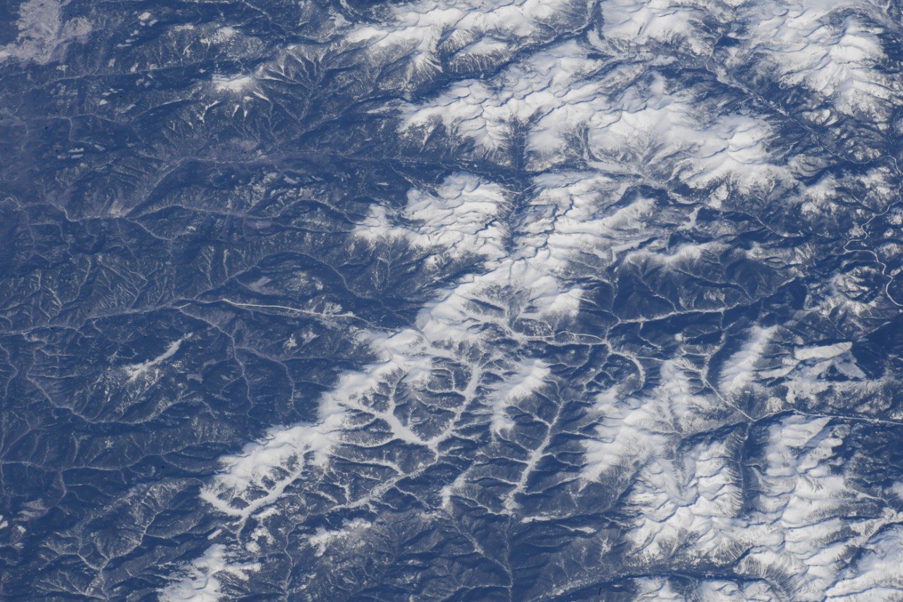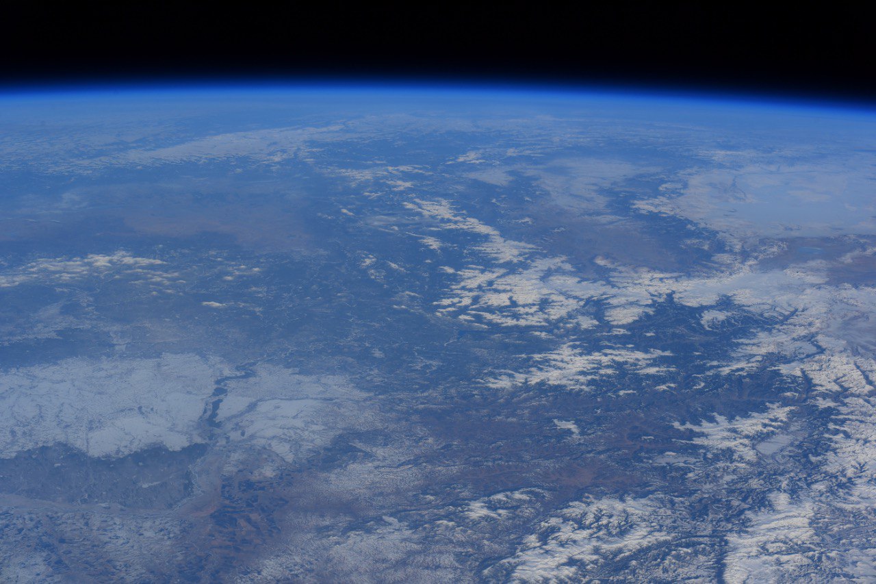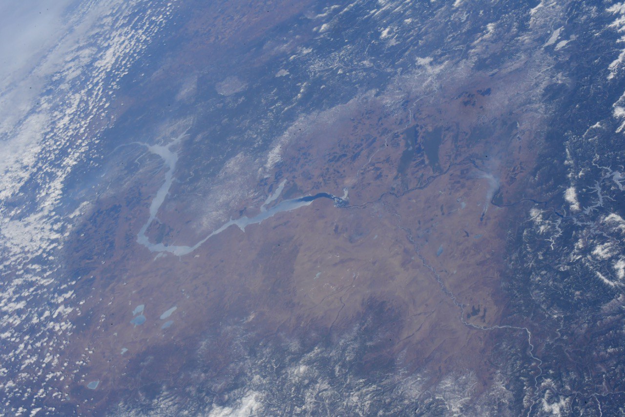 Красноярский космонавт Кирилл Песков показал Красноярский край из космоса. На фото угадываются озера Хакасии и Красноярское водохранилище.