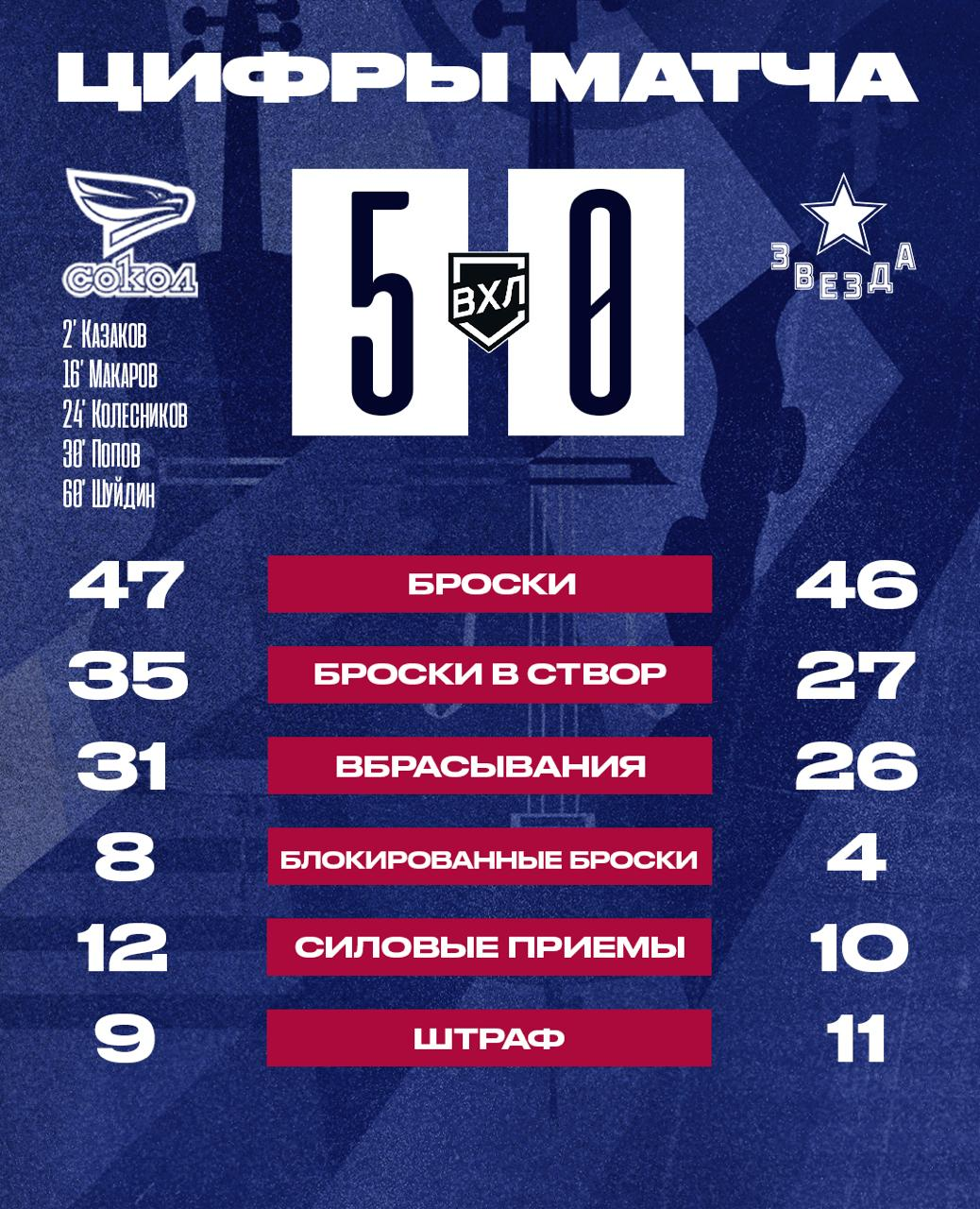 Важным фактором для победы стала игра вратаря Александра Дюбина сумевшего отразить все броски «Звезды».