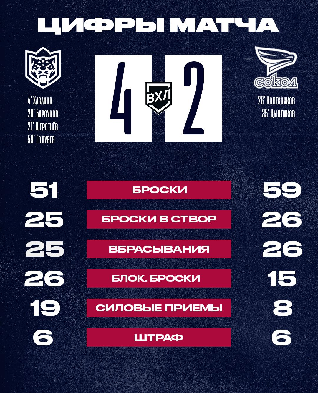 — Мы скованно начали первый период, пропустили голы. Тяжело было отыгрываться с 0:3, но ребята — молодцы, нашли в себе силы и где-то, может, и характер проявили. Вроде бы по счёту «подкрались», но немножко не получилось, — прокомментировал игру и. о. главного тренера ХК «Сокол».
