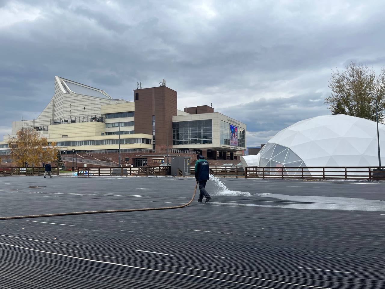 Красноярцам показали, как создаётся лёд для катка на Стрелке