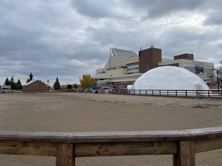 «Купол-гигант», или шатёр, в диаметре достигает 18 метров. Собирается всего за 5 дней, а после монтажа «принимает душ». Вход обрамляется аркой. Высота шатра достигает почти 7 метров. Площадь – 277 кв.м., вместимость – 210 человек.
