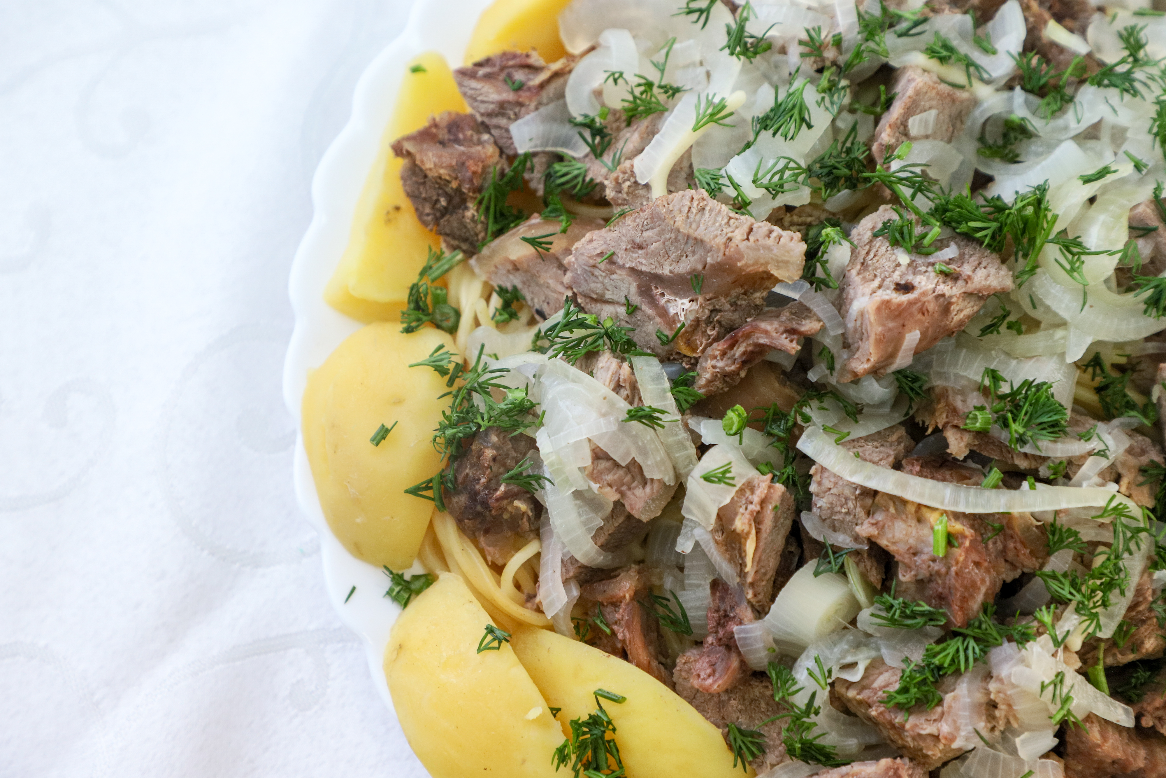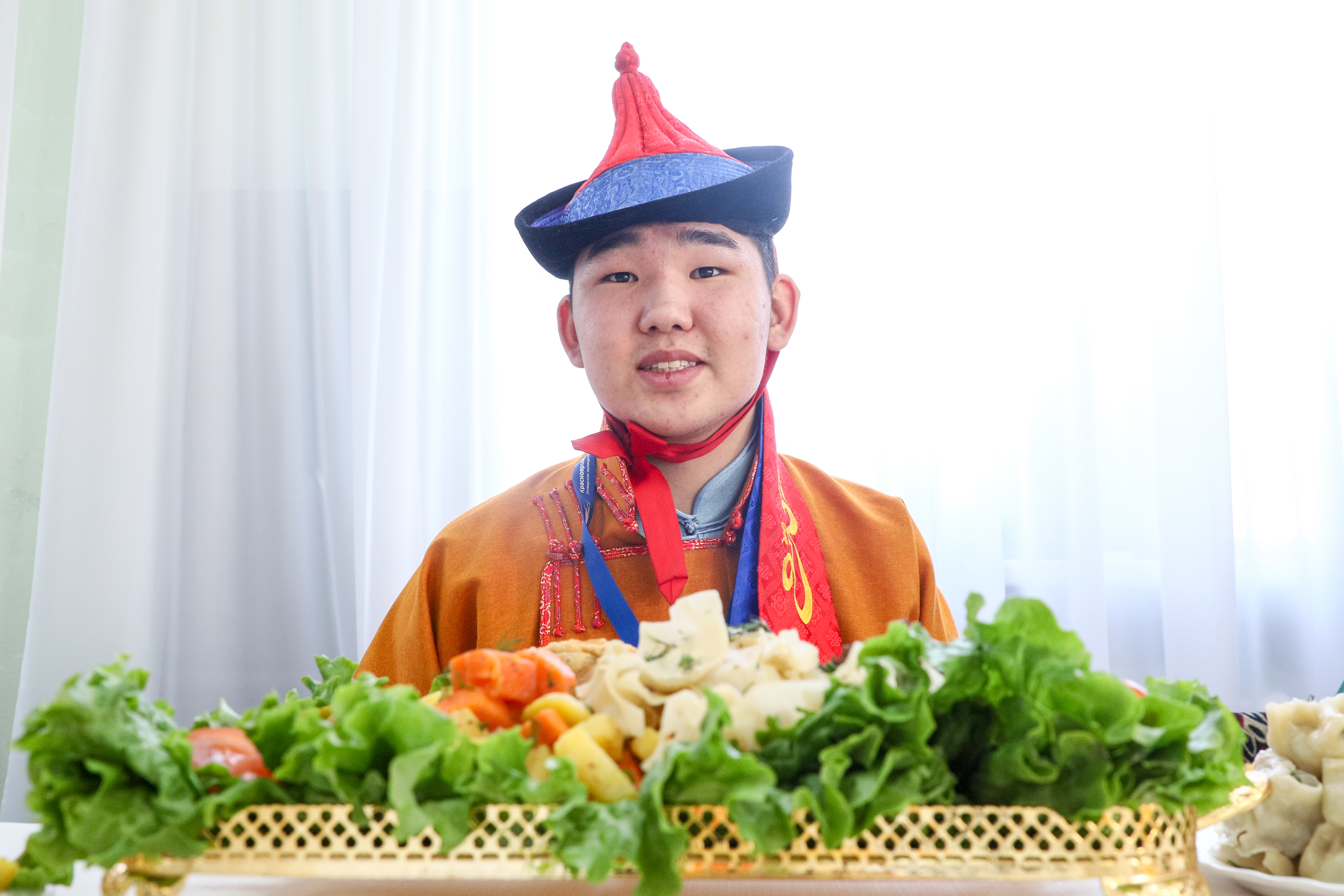 — Восемьдесят процентов наших блюд состоят из мяса. Одно из представленных здесь — это национальные буузы из тонкого теста и с мясной начинкой, — делится Амангельды из Монголии. — В основном мы его готовим на праздник Цаган сар («Белый месяц». — Авт.) — это монгольский Новый год. Секрет такого тонкого теста в том, что мы очень сильно раскатываем один слой, потом складываем друг на друга и ещё раз раскатываем. Так мы делаем несколько раз, а потом эти слои разделяем и варим.
