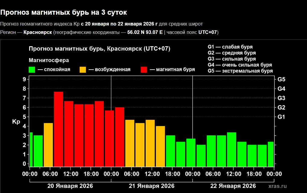 Сегодня, 20 января, на Красноярск обрушилась магнитная буря. Она была вызвана облаком плазмы от первой в этом году вспышки на Солнце. Ее мощность, по данным ученых, приблизилась к историческому максимуму.