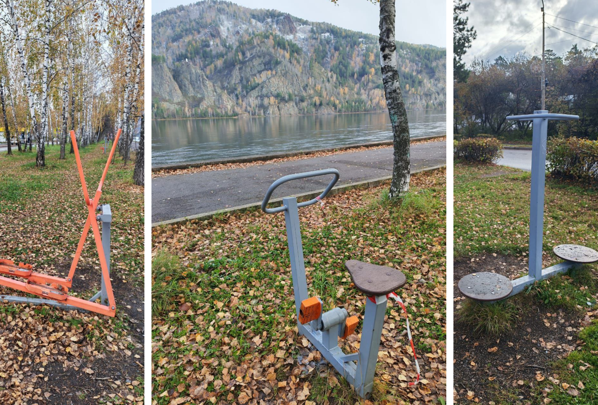 На набережную Дивногорска вернули отремонтированные спортивные тренажеры