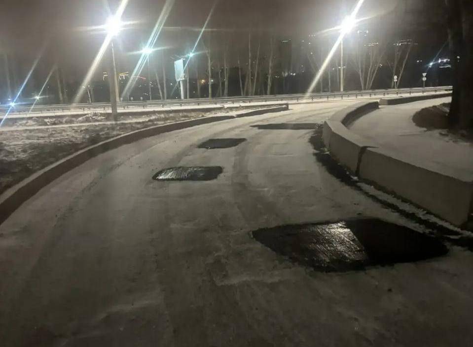 Для восстановления покрытия использовали смесь литого асфальта. Такой материал позволяет быстро устранить дефекты и сделать дороги безопаснее для пешеходов и велосипедистов.