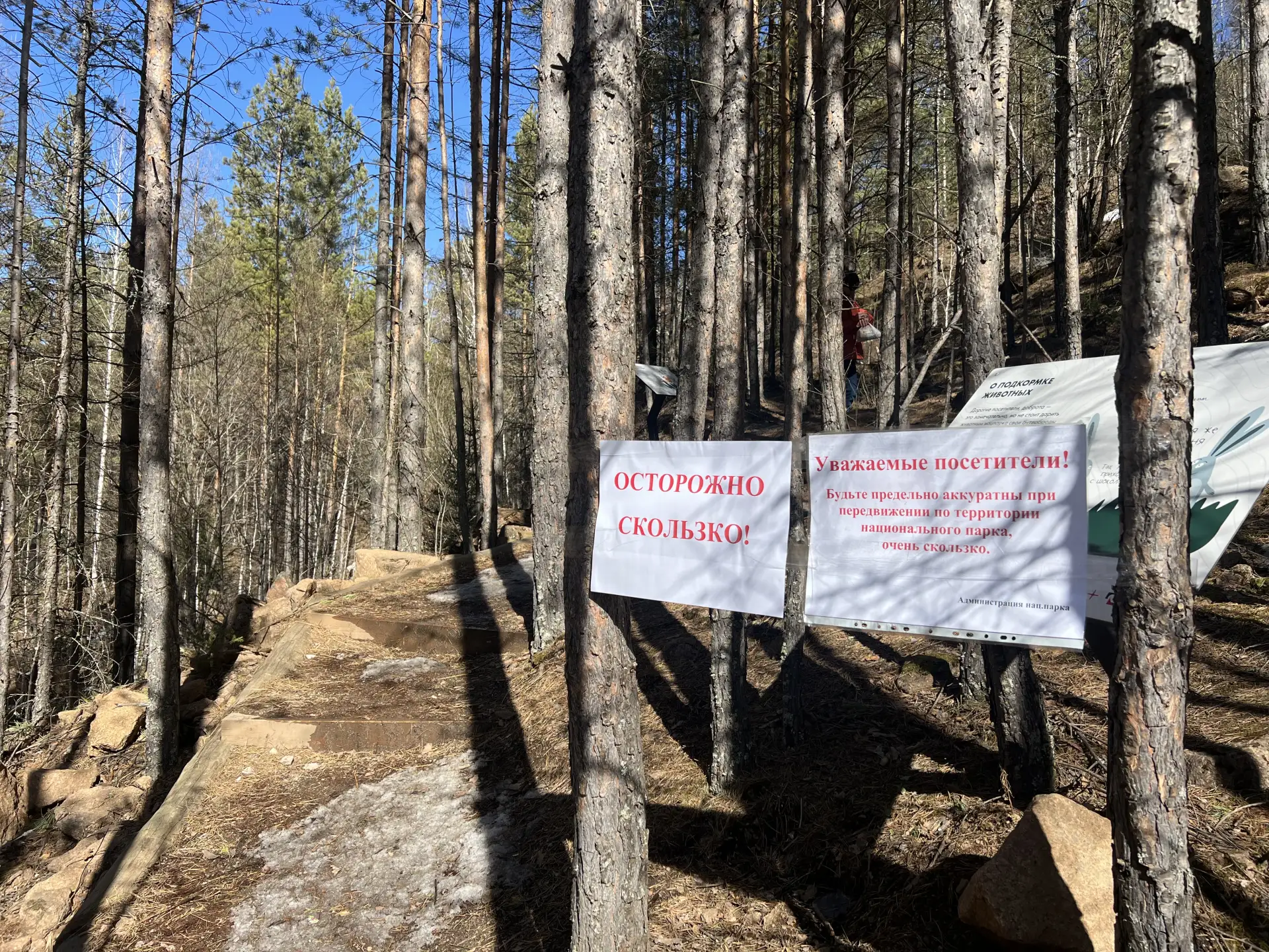 Посетителей национального парка «Красноярские Столбы» предупреждают о гололёдице на территории скального района. Объявления с предупреждением разместили на восточном входе — на подъемах к скалам Китайская Стенка и Ермак особенно скользко.