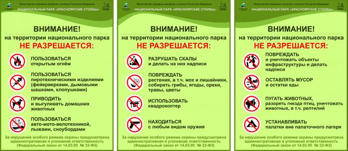Туристам рекомендуют передвигаться только по тропам, а также не посещать маршруты в тёмное время суток и при плохой погоде. Если за окном дождь, туман, снегопад или ветер, от посещения Столбов лучше воздержаться.