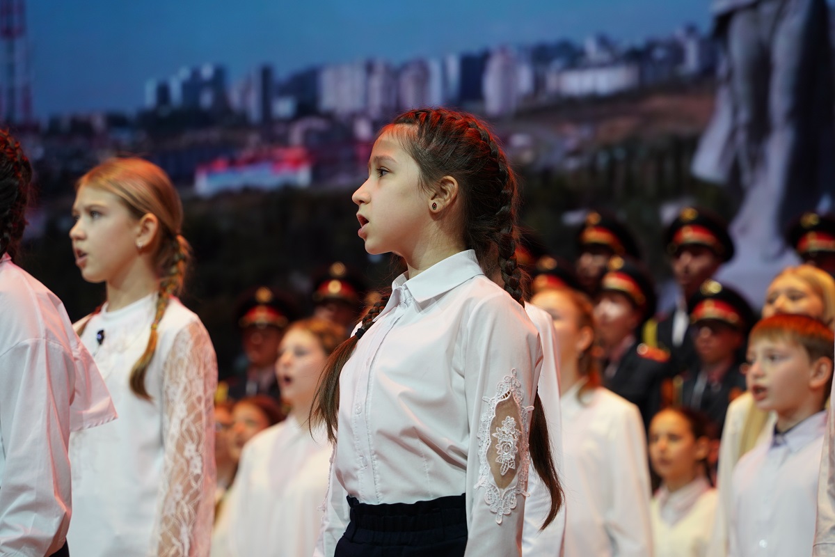 Патриотический концерт был подготовлен силами различных сообществ, среди которых и детские коллективы. В своих номерах они буквально оживили страницы истории. Запись концерта организаторы передадут бойцам в зону проведения специальной военной операции – это станет творческим подарком к Новому году.