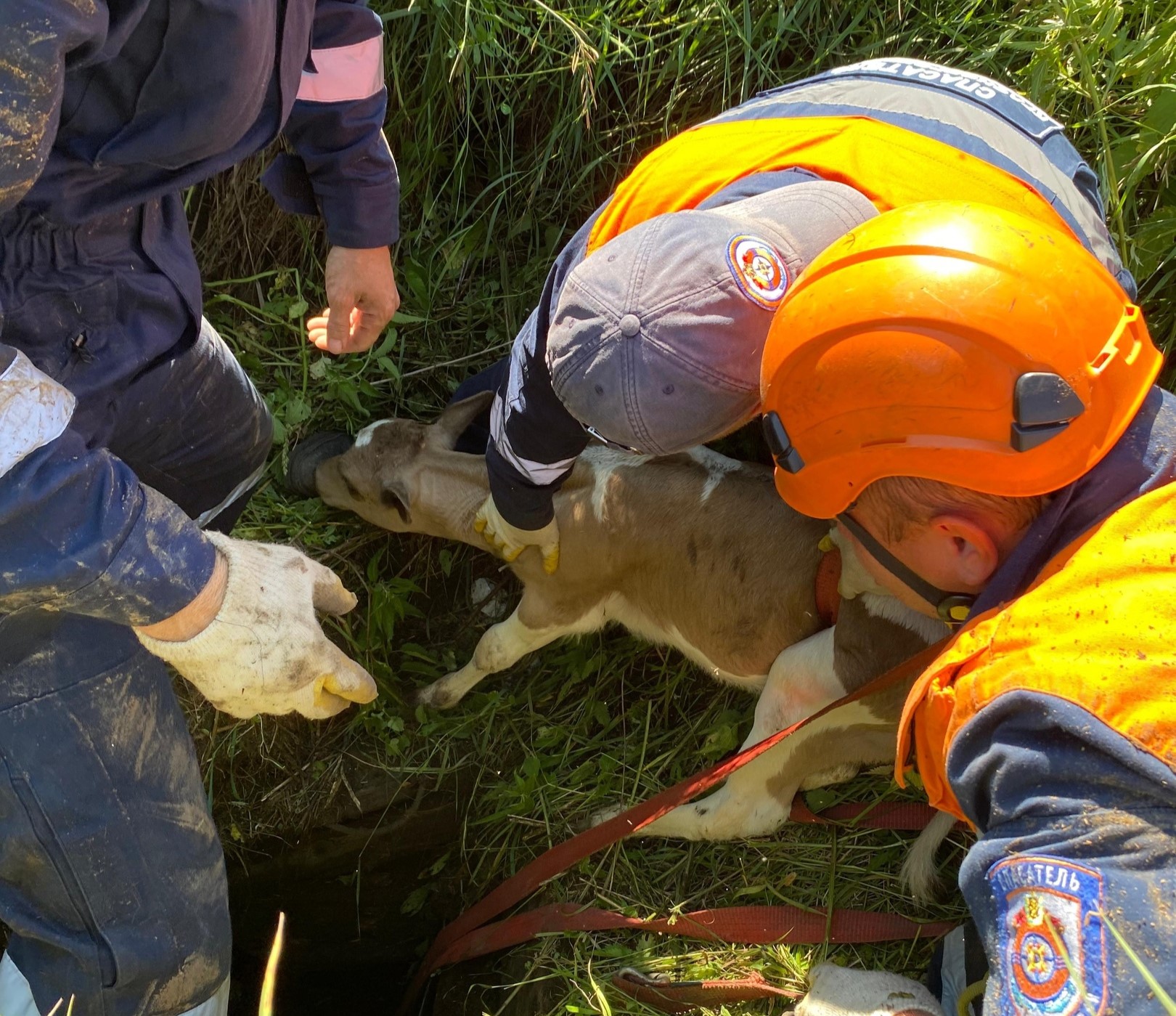 На юге Красноярского края спасатели вытащили теленка из пятиметрового колодца