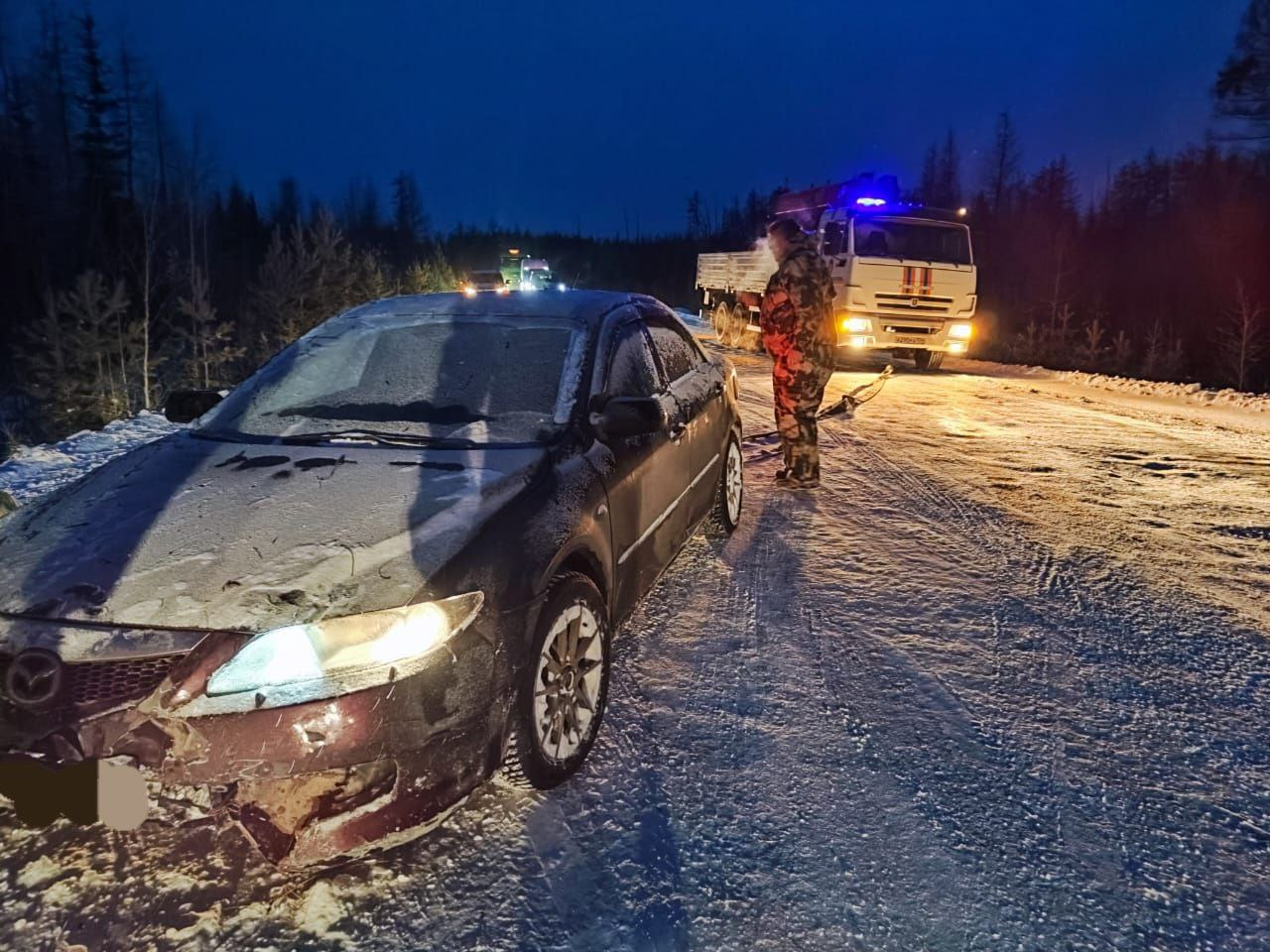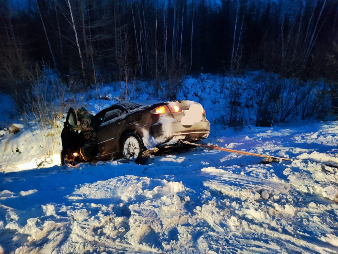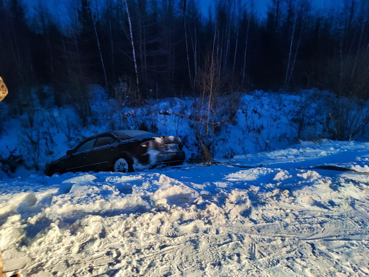 На заснеженной трассе Абан-Богучаны автомобиль съехал в кювет