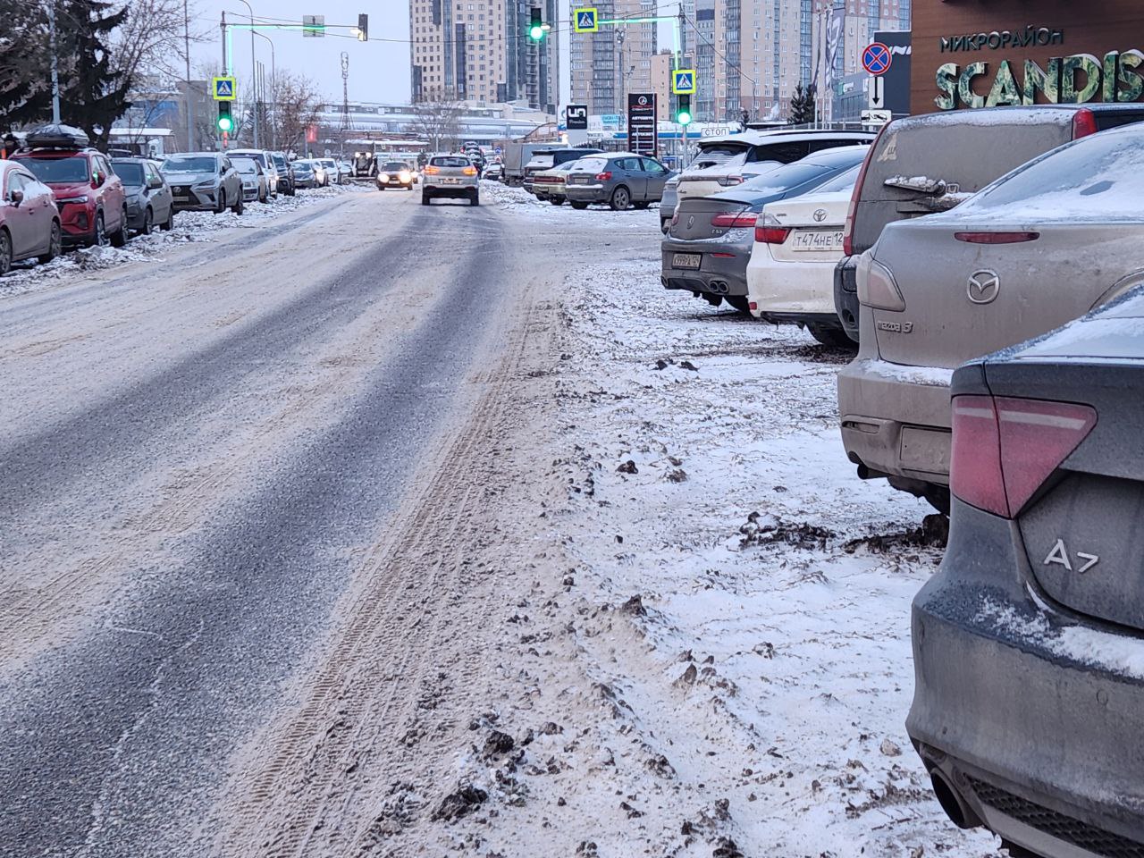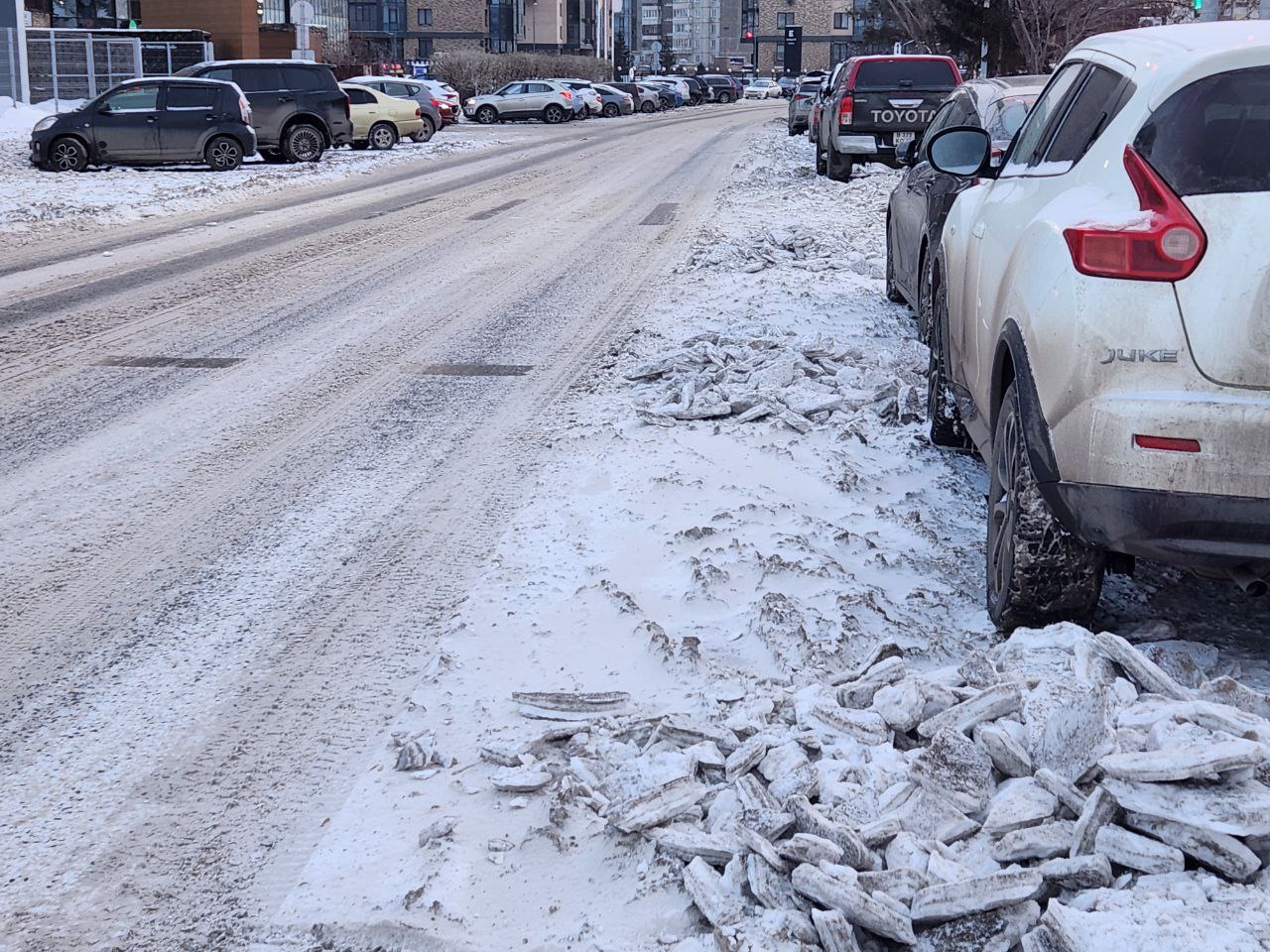 Из-за запаркованных авто улицы не могут очистить как следует.