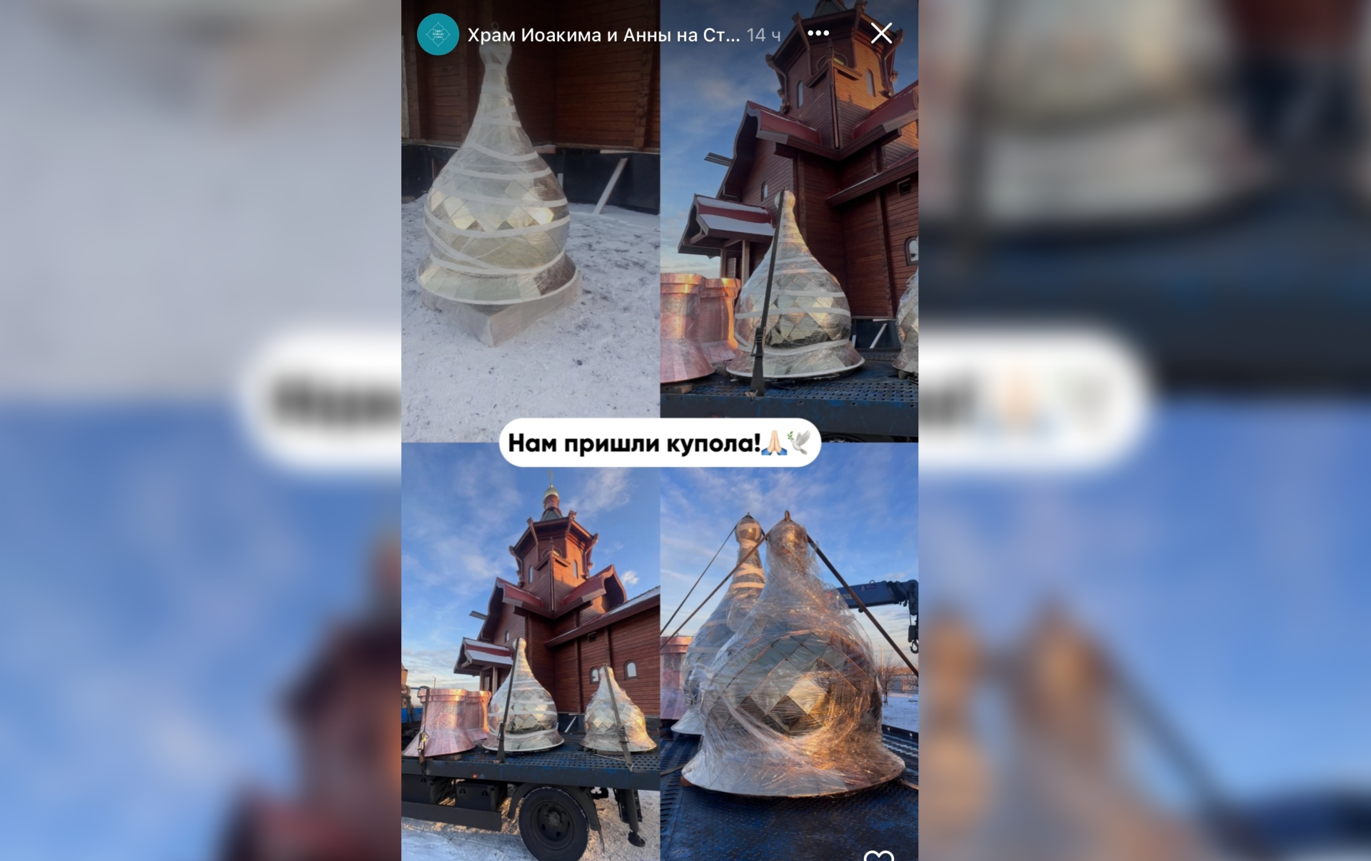 В храм праведных Иоакима и Анны в Красноярске доставили новые элементы – два дополнительных купола и несколько колоколов. Об этом сообщили в социальных сетях прихода, опубликовав фотографии разгрузки.